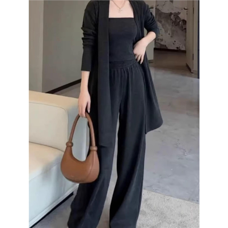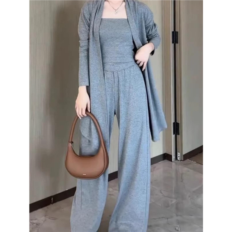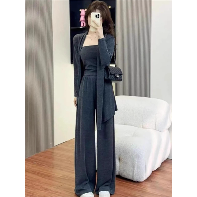 时尚休闲运动套装女秋冬新款洋气减龄抹胸开衫阔腿裤小个子三件套