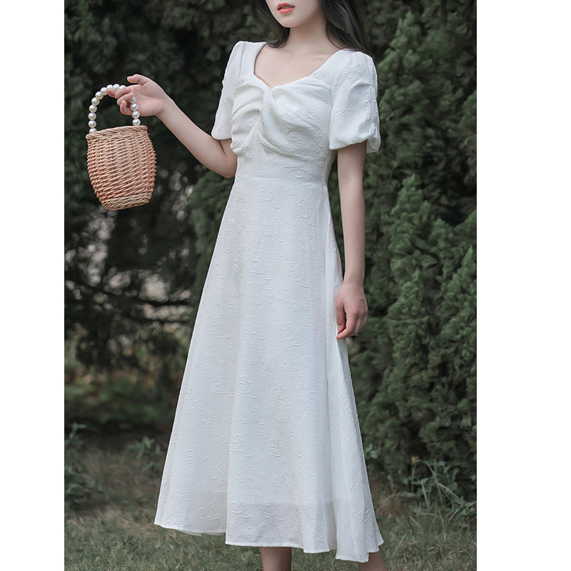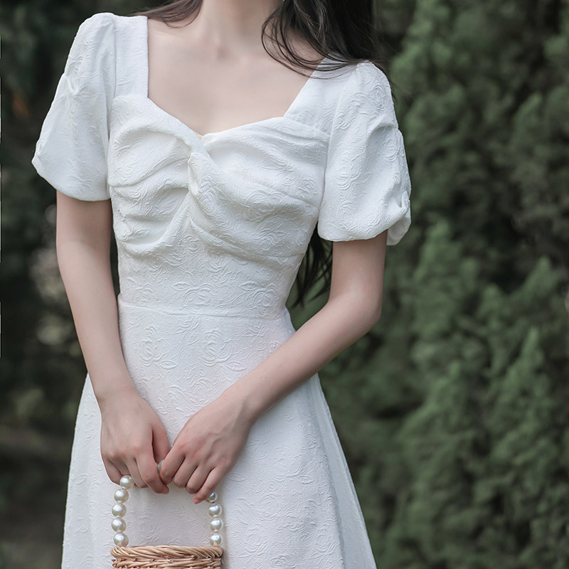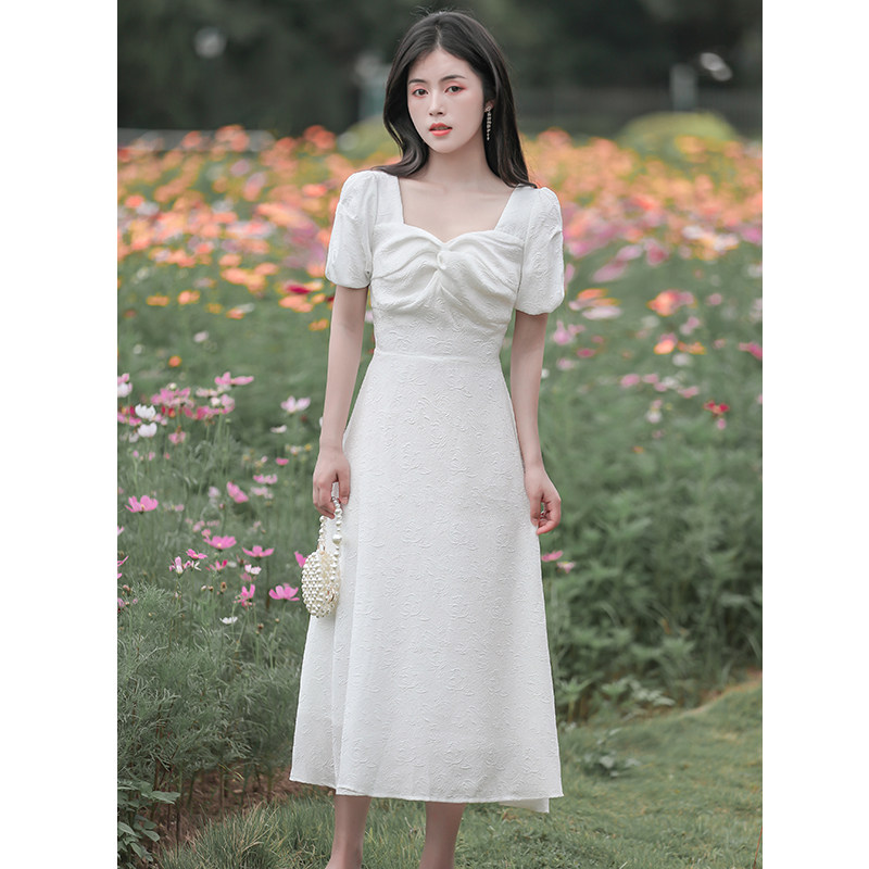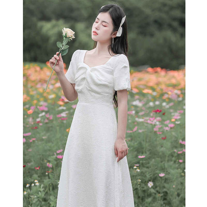 夏季气质温柔公主风高级感轻奢领证白色礼服初恋少女度假连衣裙