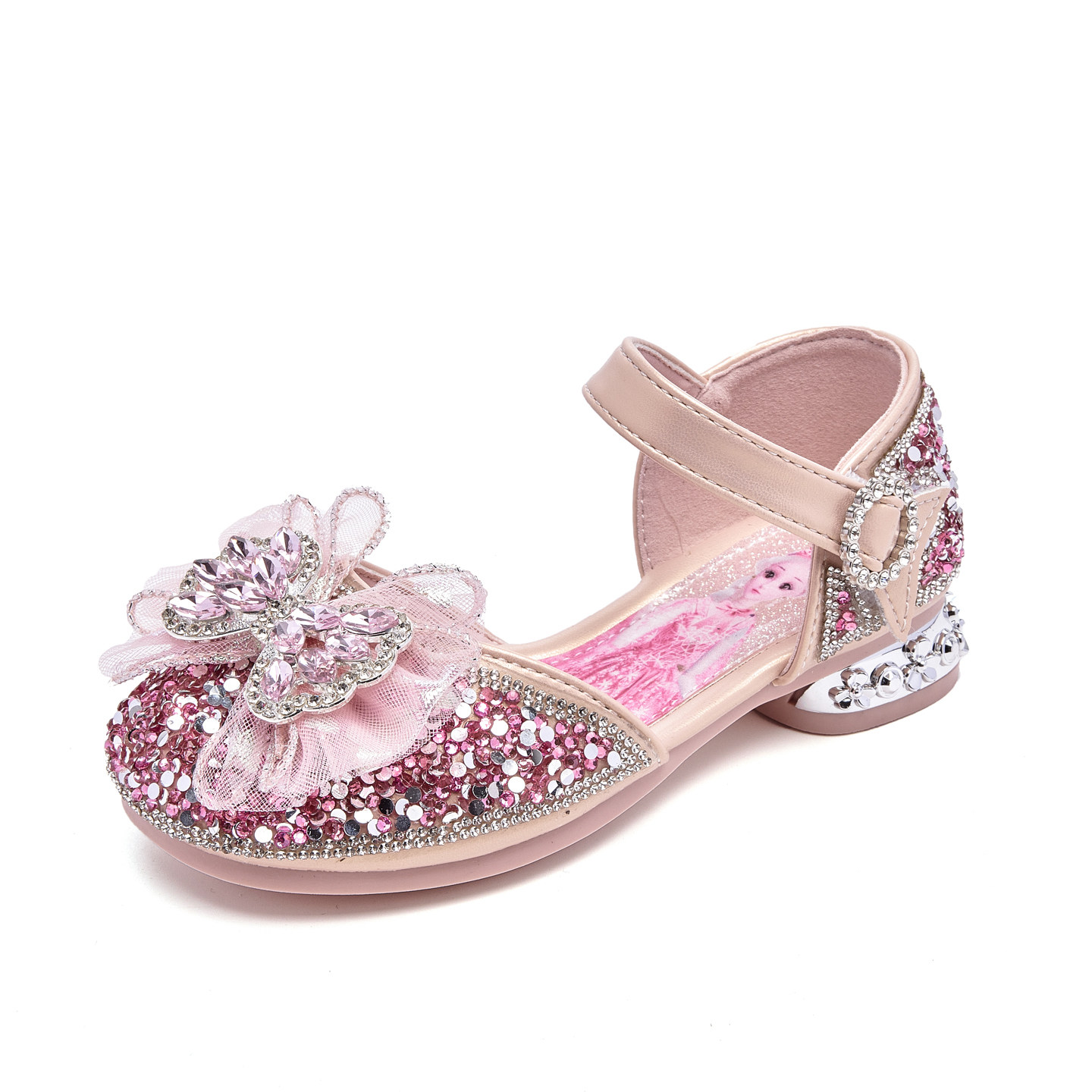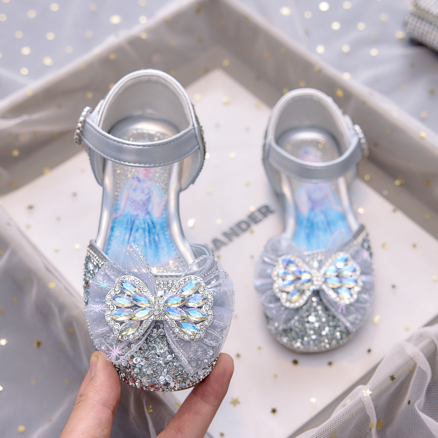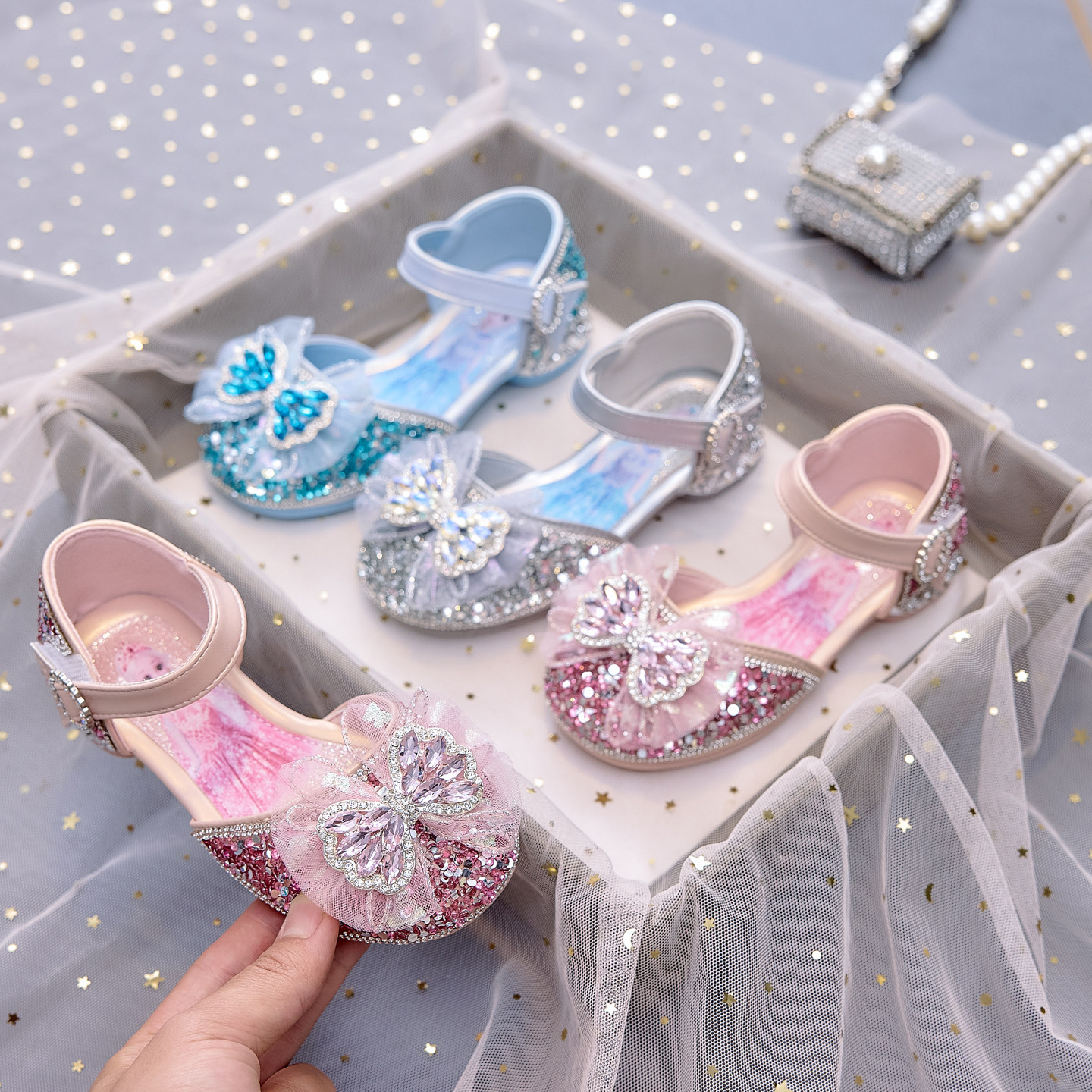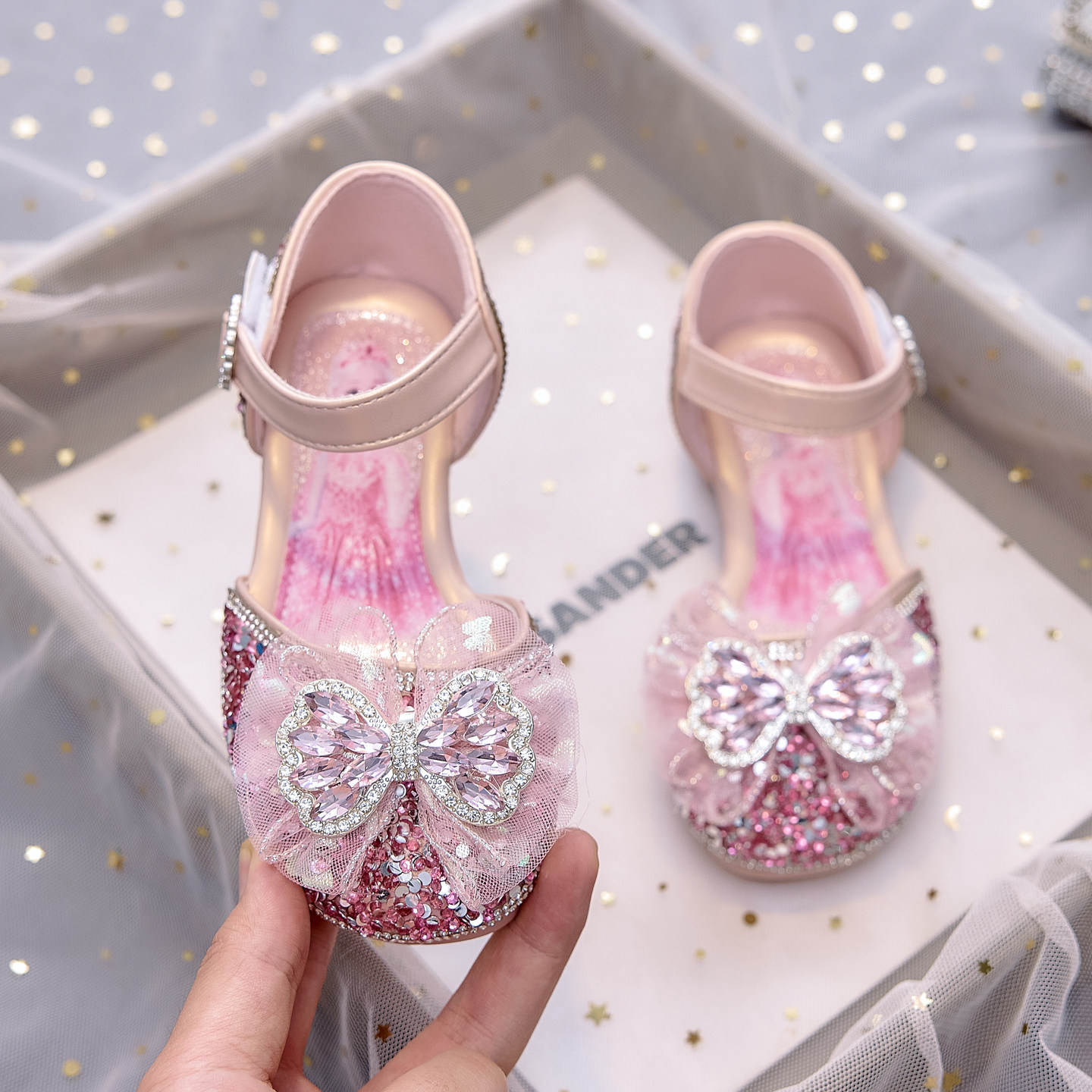 女童凉鞋包头公主鞋小高跟水晶鞋2026夏季新款闪亮包跟女孩舞蹈鞋
