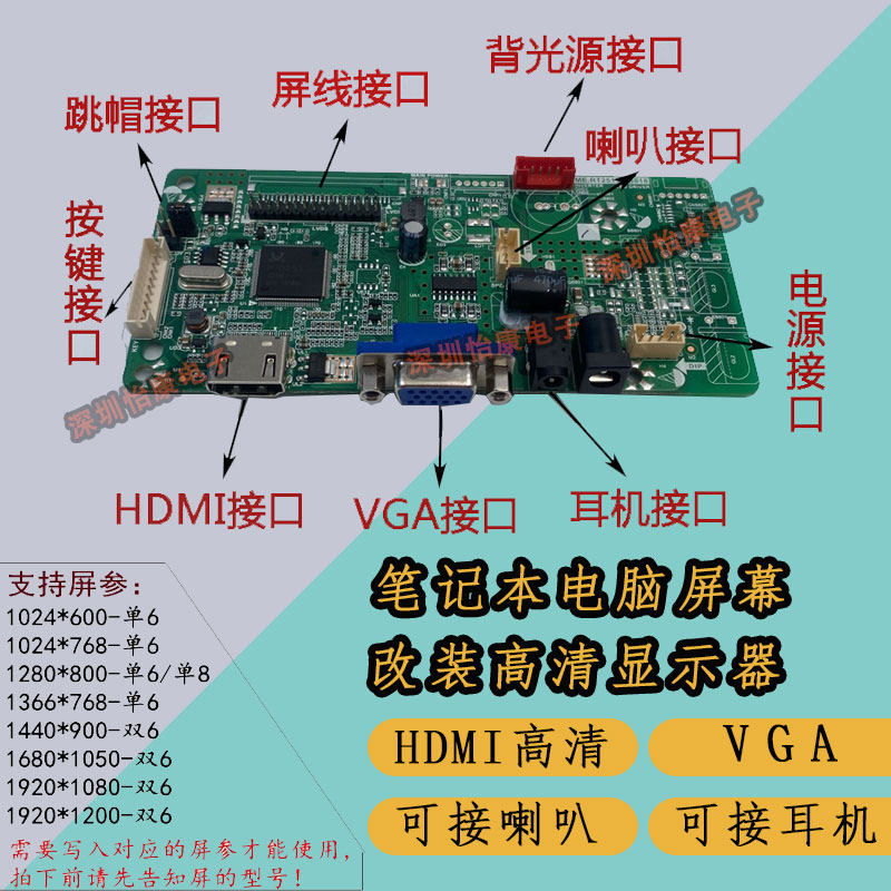 笔记本显示器电脑液晶屏幕一线通便携屏驱动板改装DIY显示屏套件