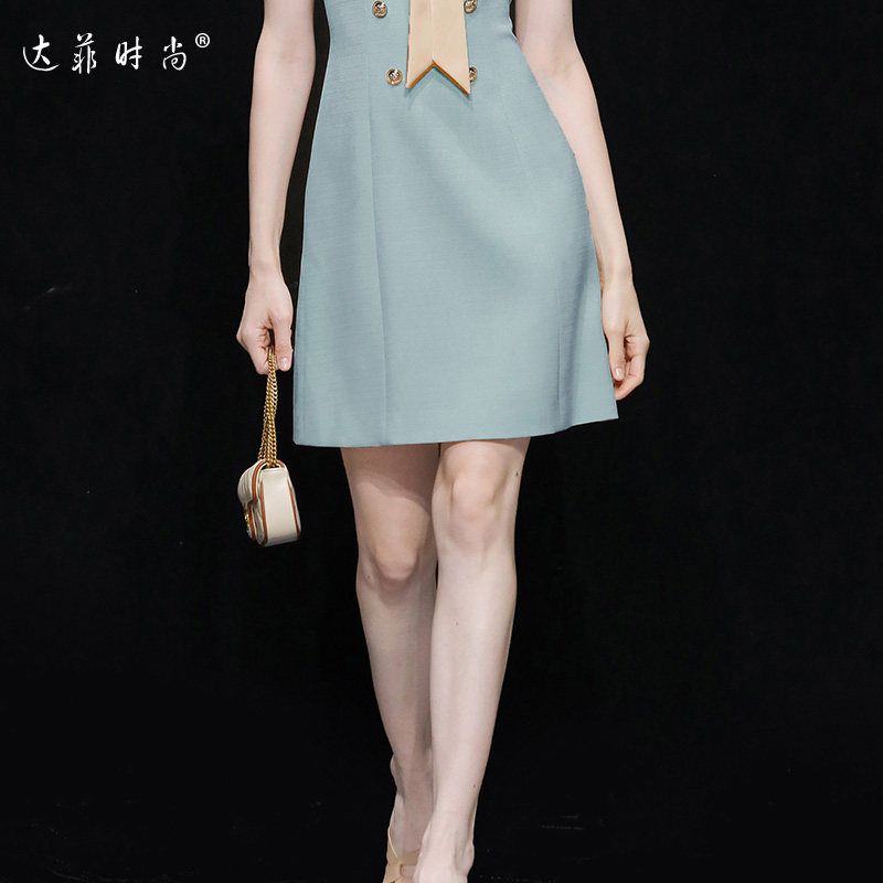 2026年夏季新款时尚气质小香风系带设计短袖收腰短款连衣裙