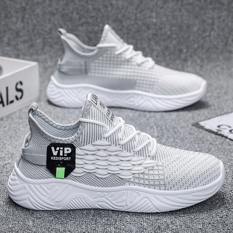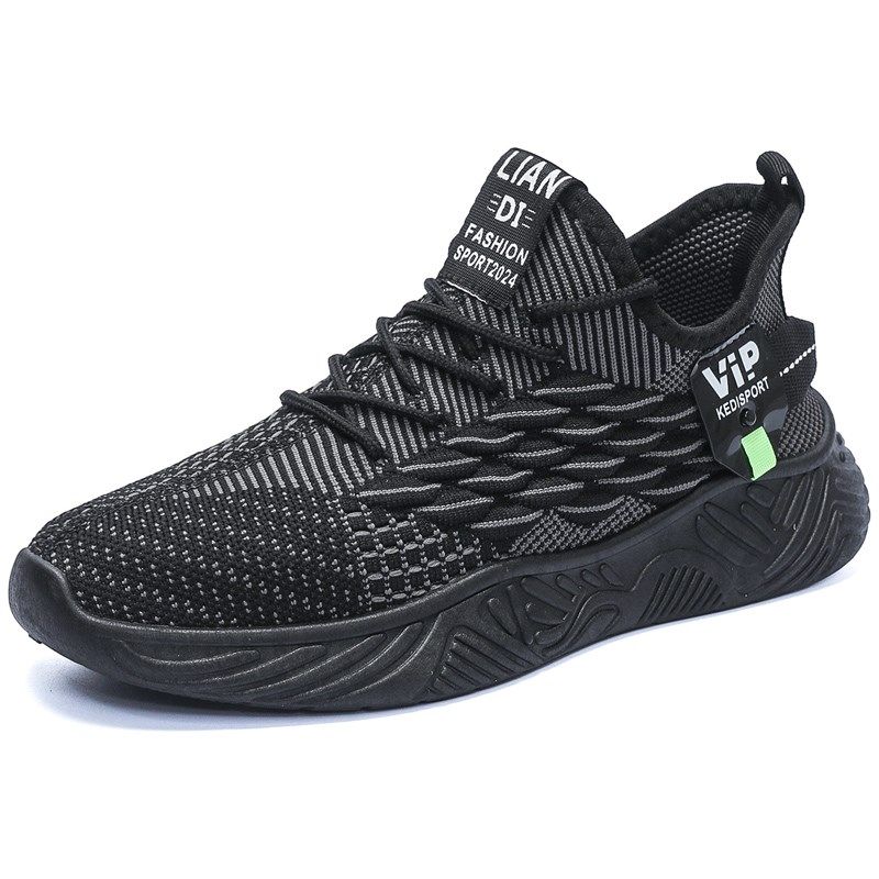 男鞋夏季透气2025新款飞织网面休闲运动跑步鞋男款防臭纯黑色鞋子