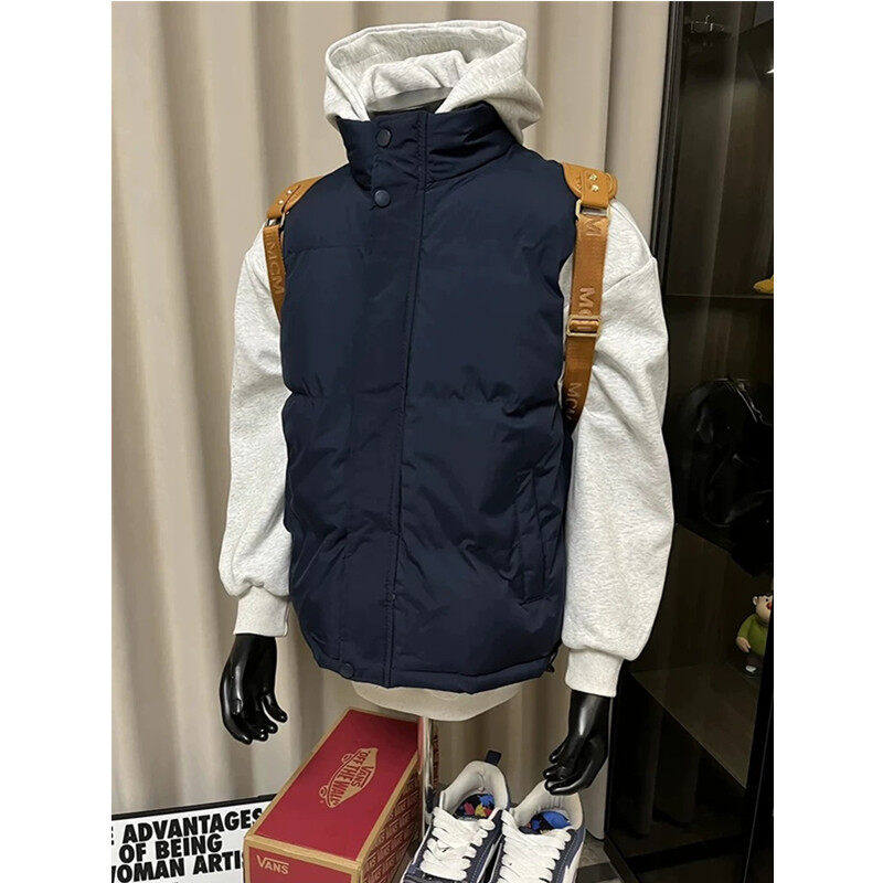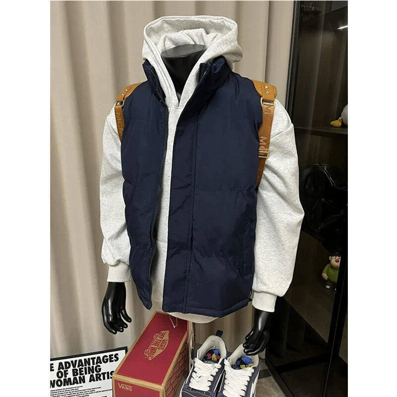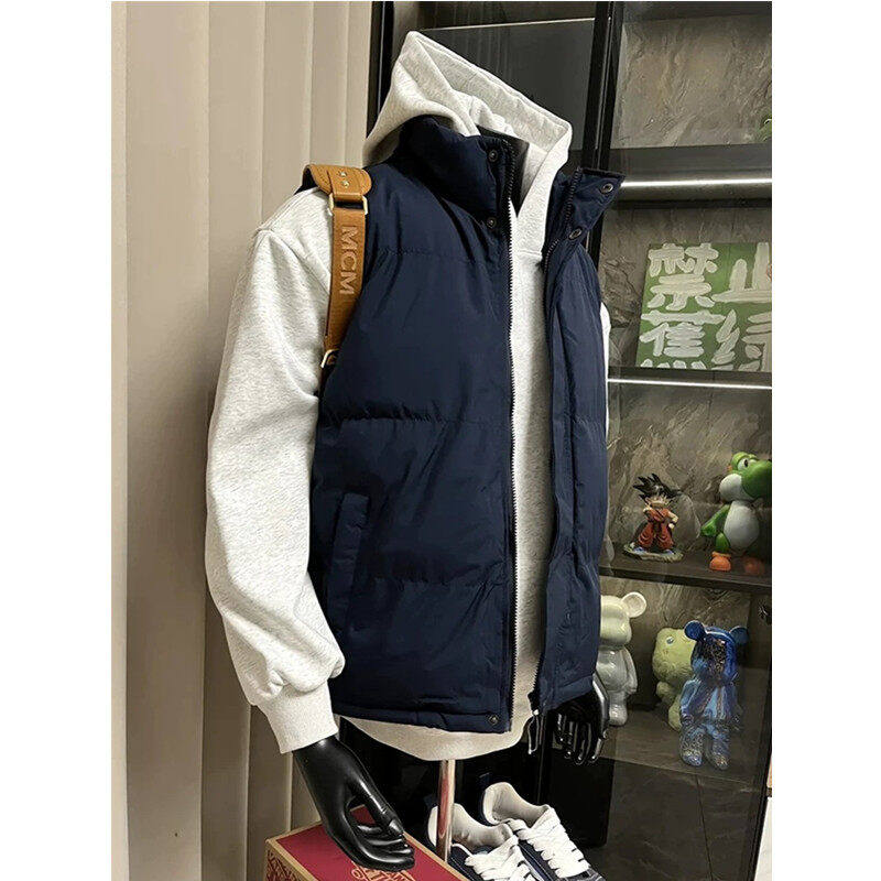 藏蓝色轻薄羽绒马甲男款冬季外穿青少年无袖棉服外套叠穿背心坎肩
