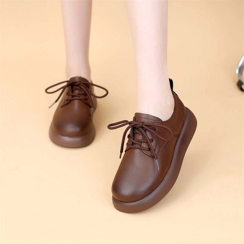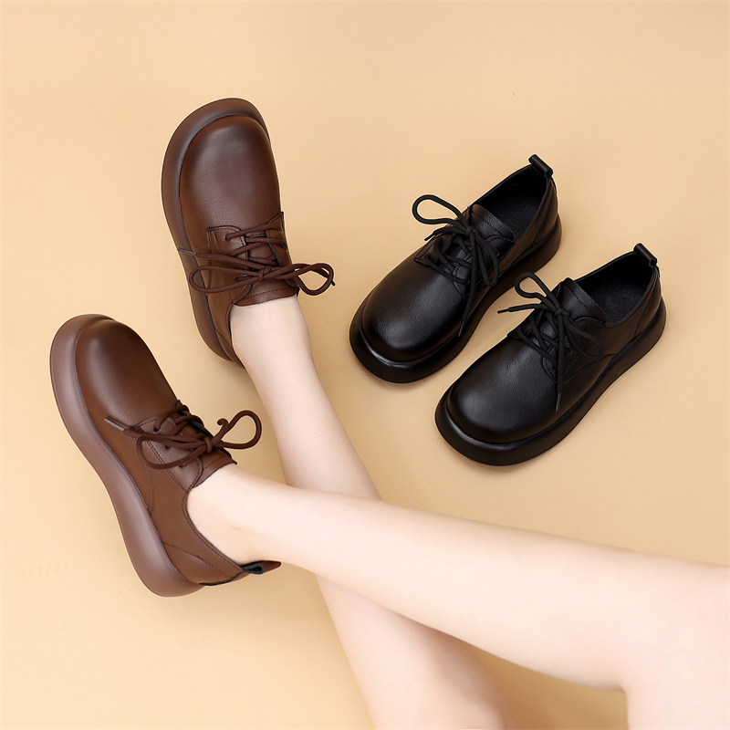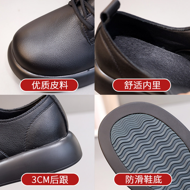 小皮鞋女配裙子2026新款英伦风显瘦单鞋学生软底真皮乐福鞋系带