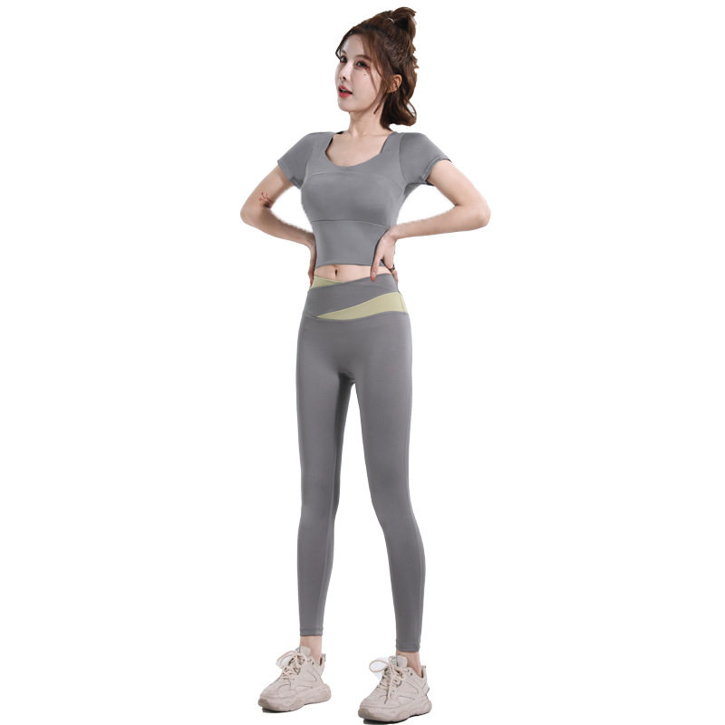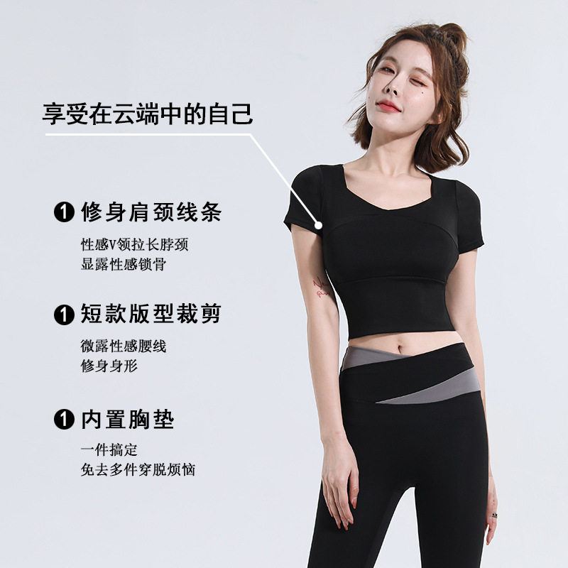 瑜伽服套装女短袖薄款夏季健身房跑步运动服速干带胸垫提臀训练服