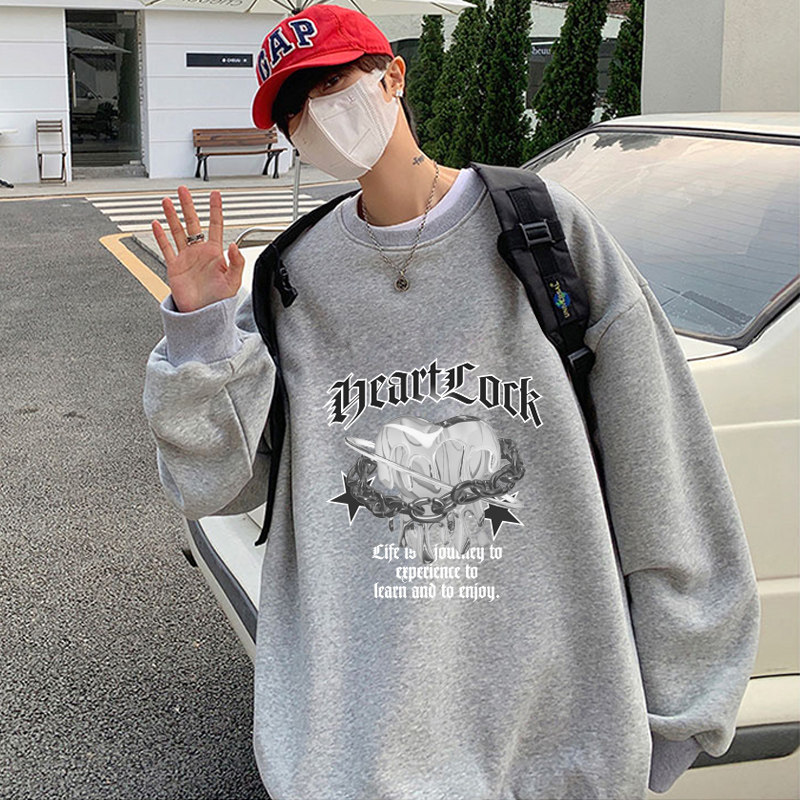 冬季青少年男生加绒加厚卫衣不带帽男高中初中学生无帽内搭秋冬款