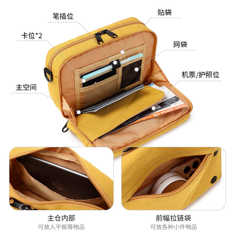 新款旅行单肩包护照证件收纳包双层大容量休闲背包防水斜挎包轻便
