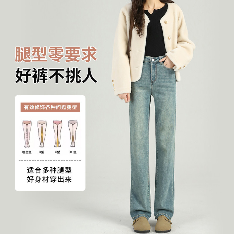 直筒牛仔裤女2026新款爆款裤子秋冬加绒显瘦修身小个子窄版阔腿裤