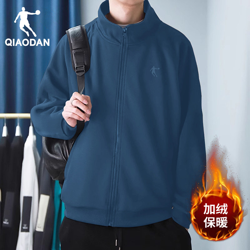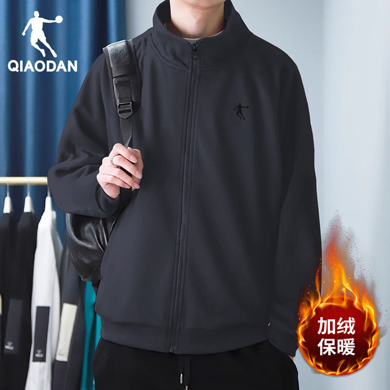 乔丹加绒外套男装2026冬季新款开衫立领保暖夹克男官方正品运动服