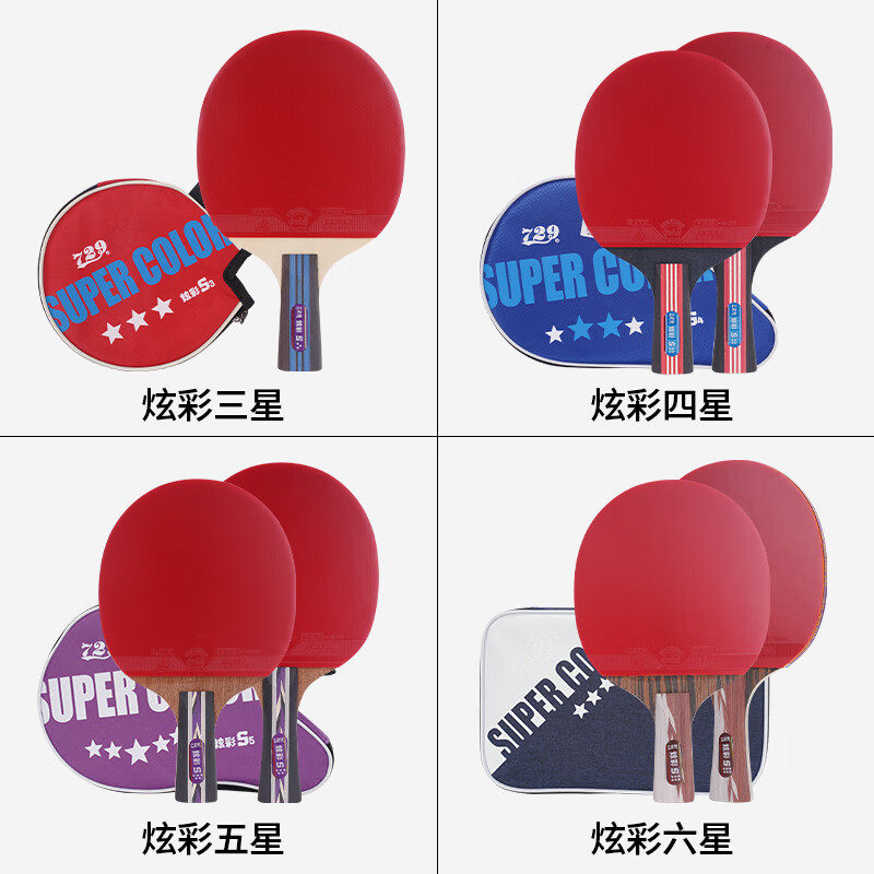 729乒乓球拍炫彩345星双面反胶横拍直拍成人儿童初学训练单拍三星