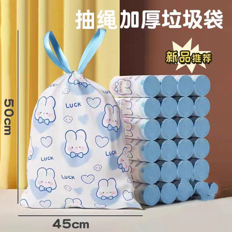 抽绳式印花垃圾袋卡通可爱家用厨房手提式加厚加大自动收口塑料袋
