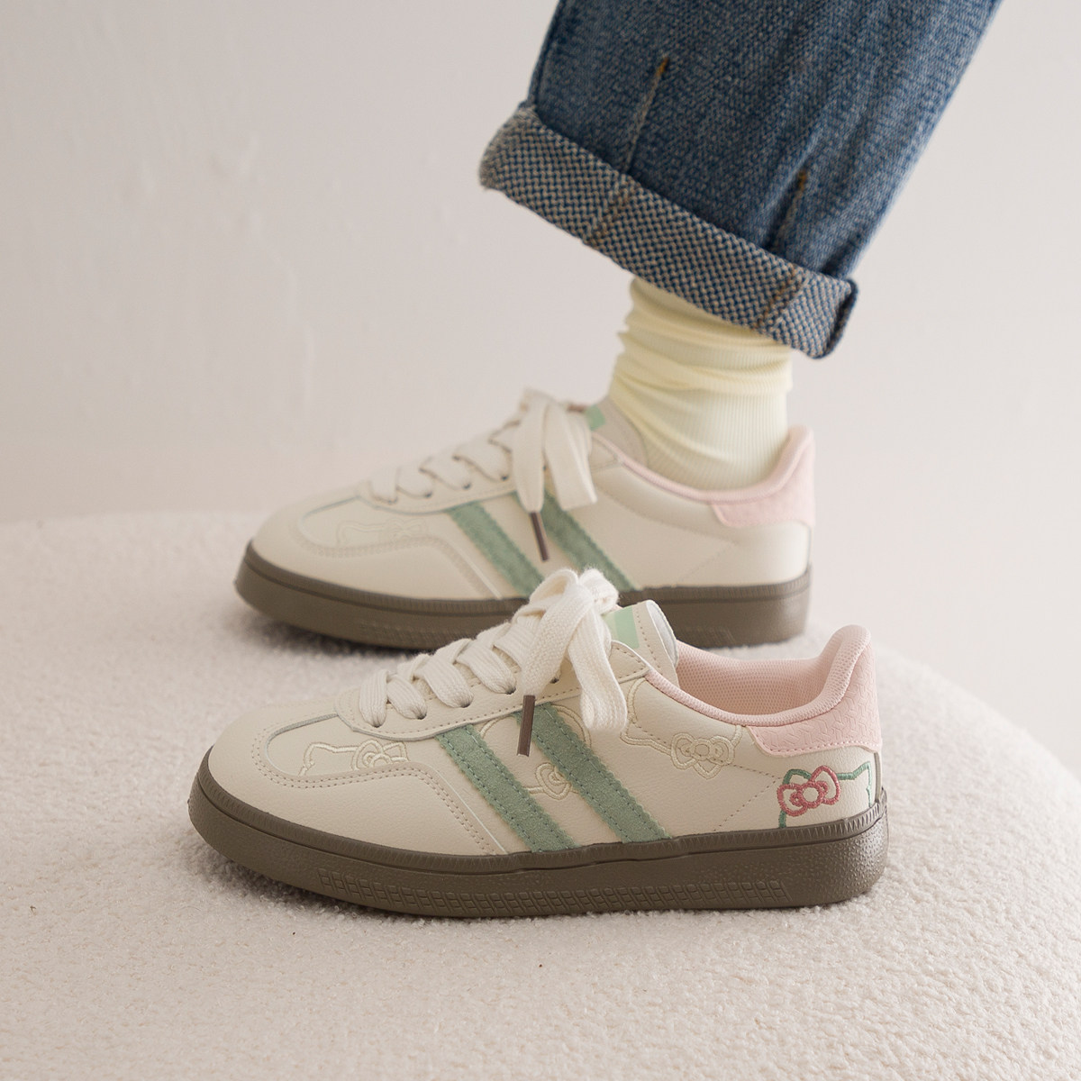 小众芭乐色哈喽kitty德训鞋可爱小白鞋女2026春季女鞋百搭板鞋子