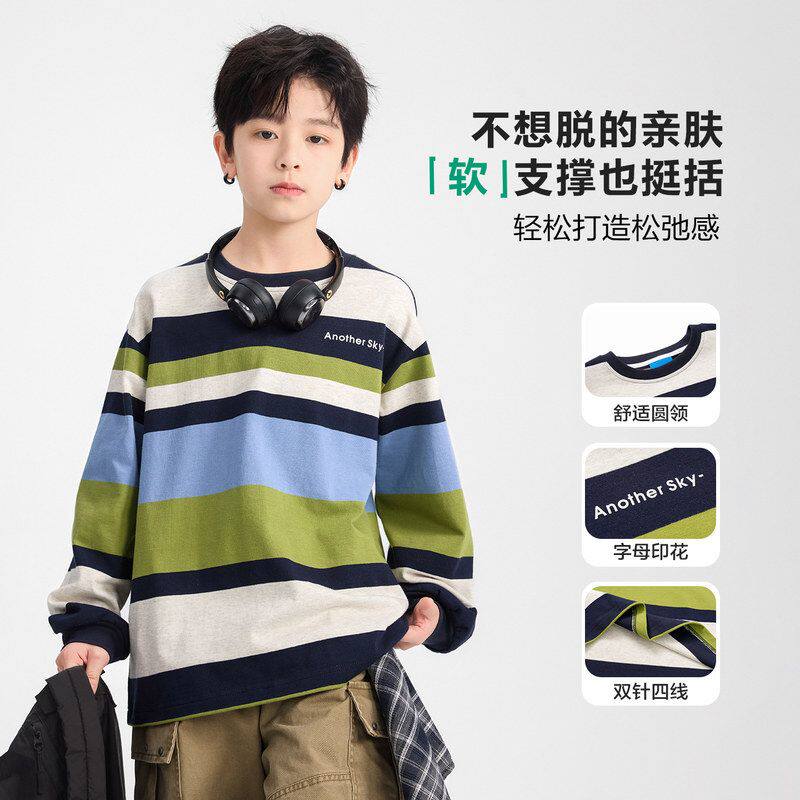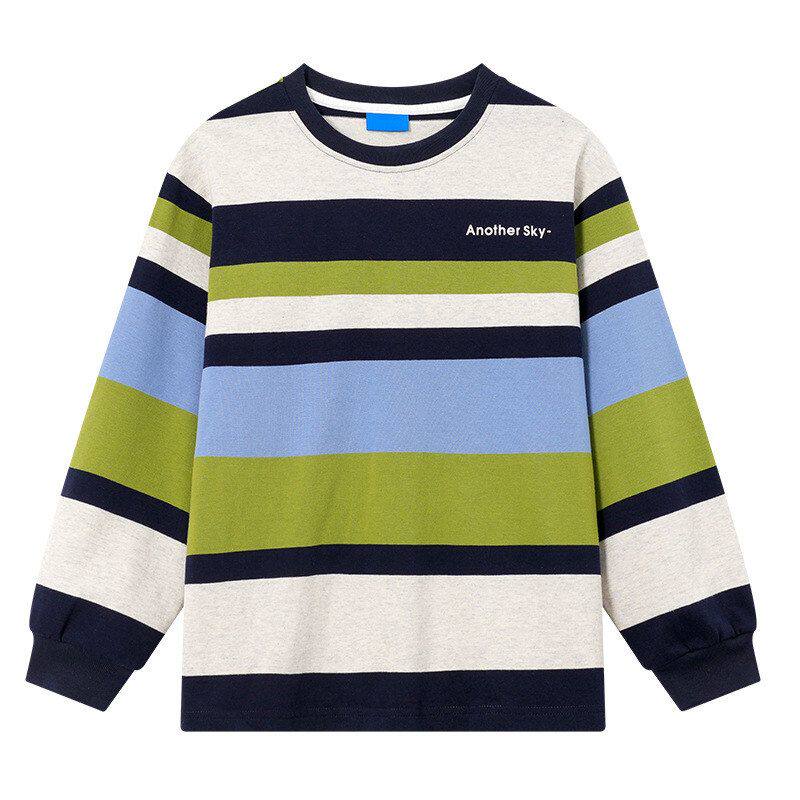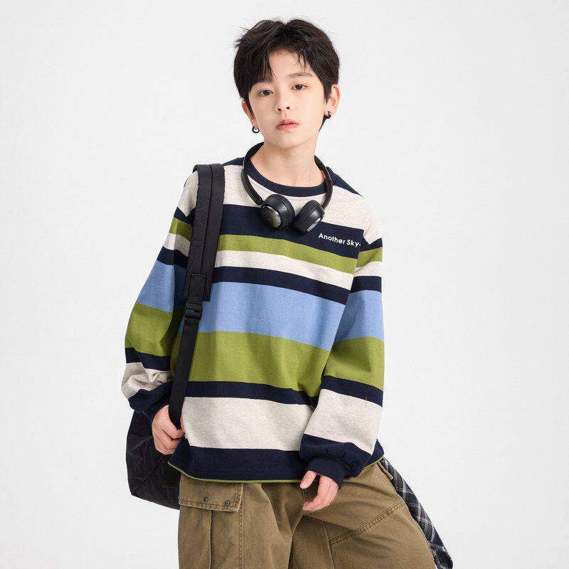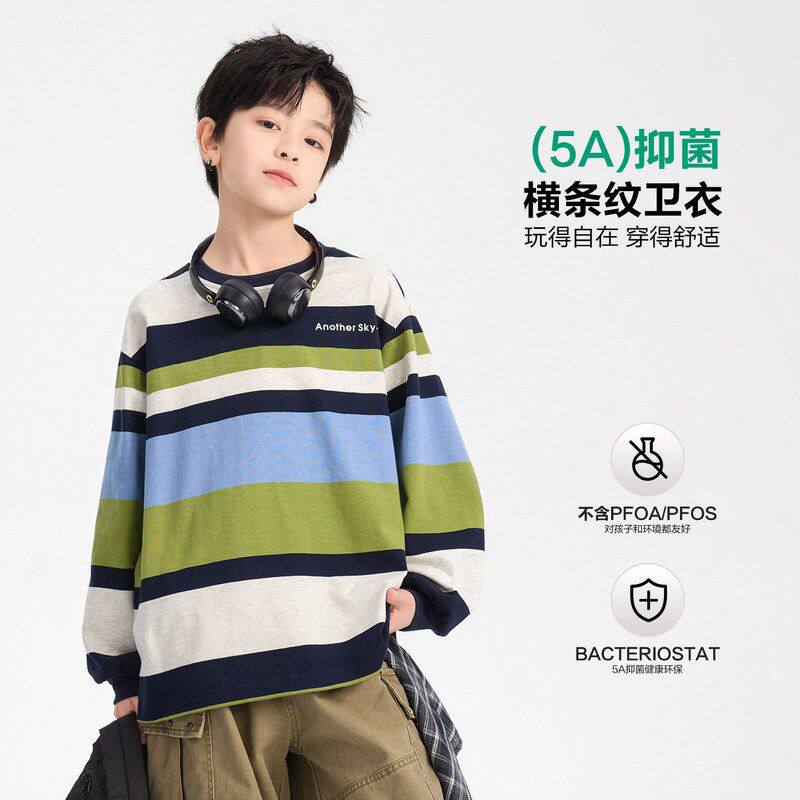 男童春装多巴胺条纹运动卫衣2026新款中学生儿童春季宽松圆领上衣