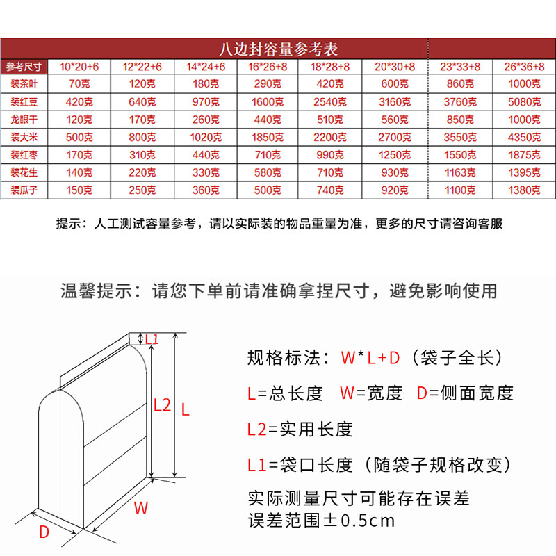 自封袋八边封透明食品包装加厚密封口袋干果零食茶叶牛皮纸收纳袋