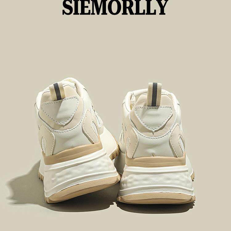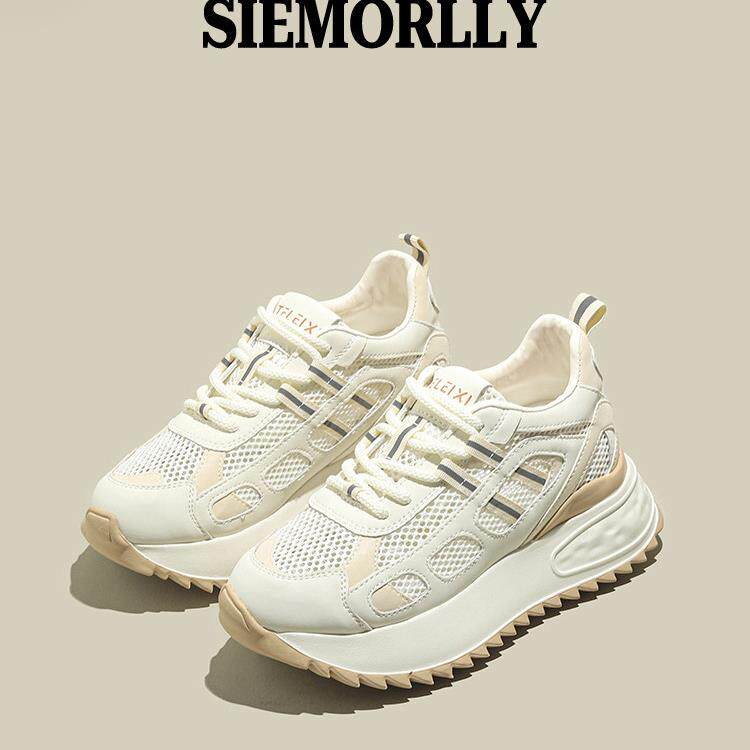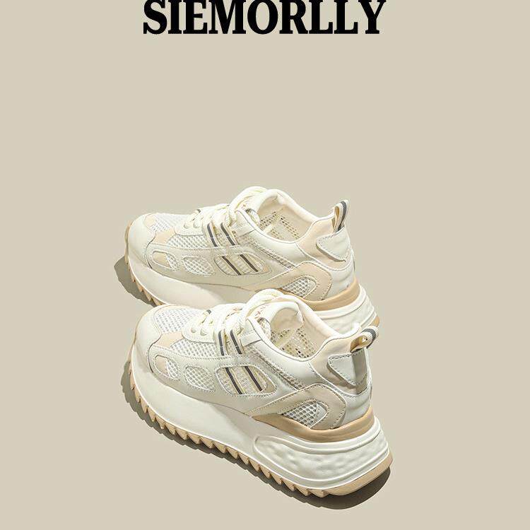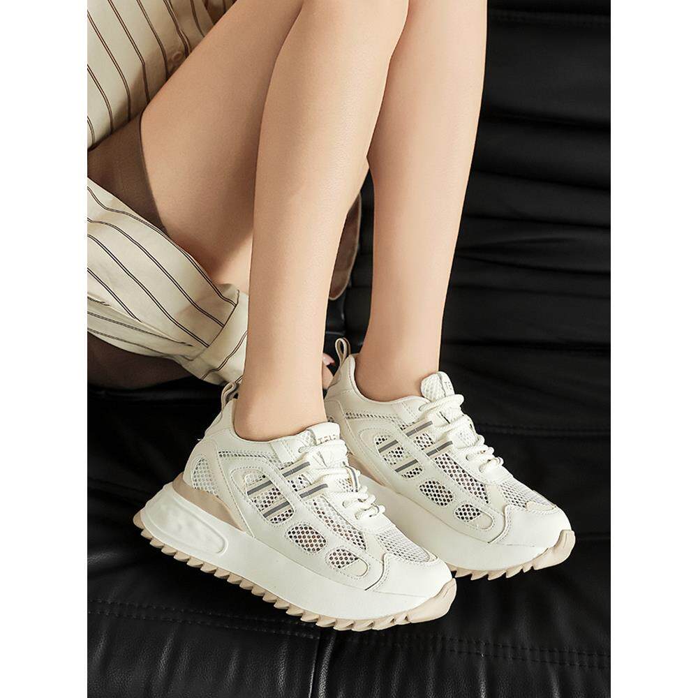 西木林网面透气内增高女士鞋夏季薄款2025新款厚底小白运动老爹鞋