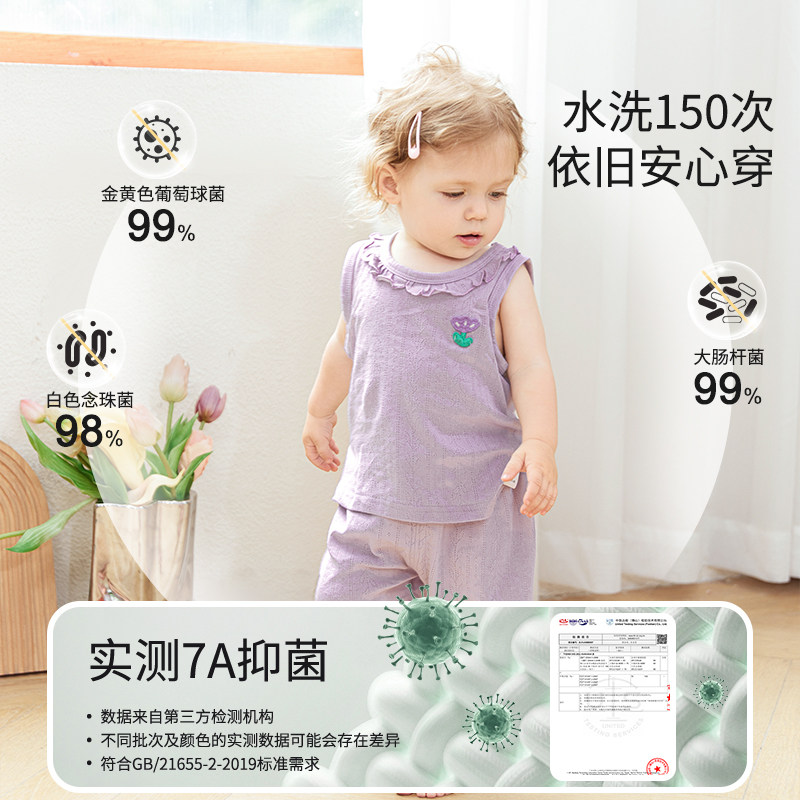 婴儿夏季套装薄款宝宝衣服男童女童外出提花分体纯棉背心短裤儿童
