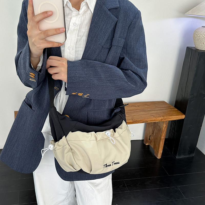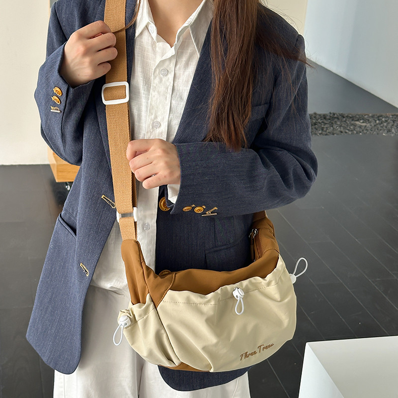 2026新款春夏休闲简约风撞色拼接斜挎包女大容量轻便百搭单肩包