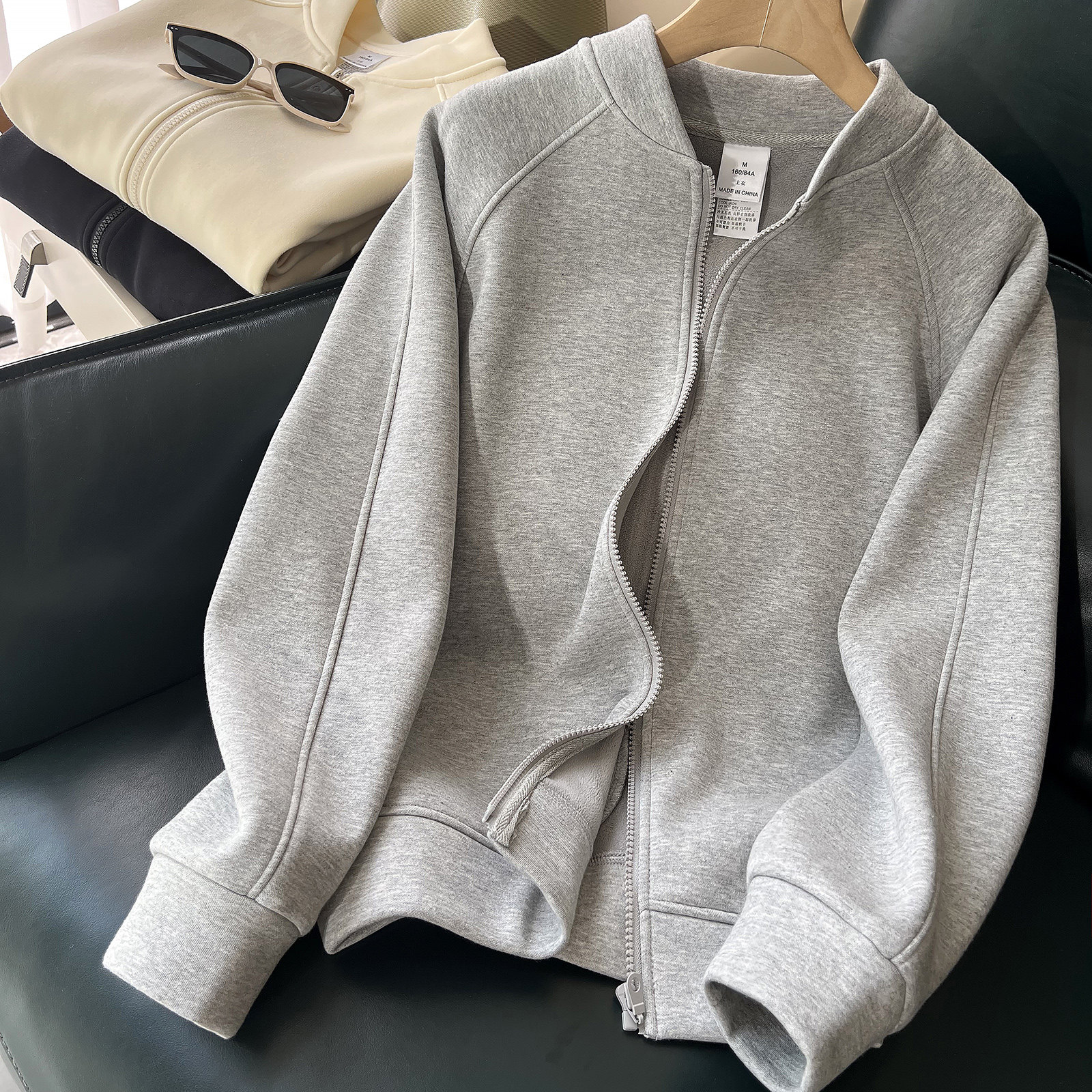 立领棒球服外套女2025新款秋冬爆款休闲开衫上衣加绒加厚灰色卫衣