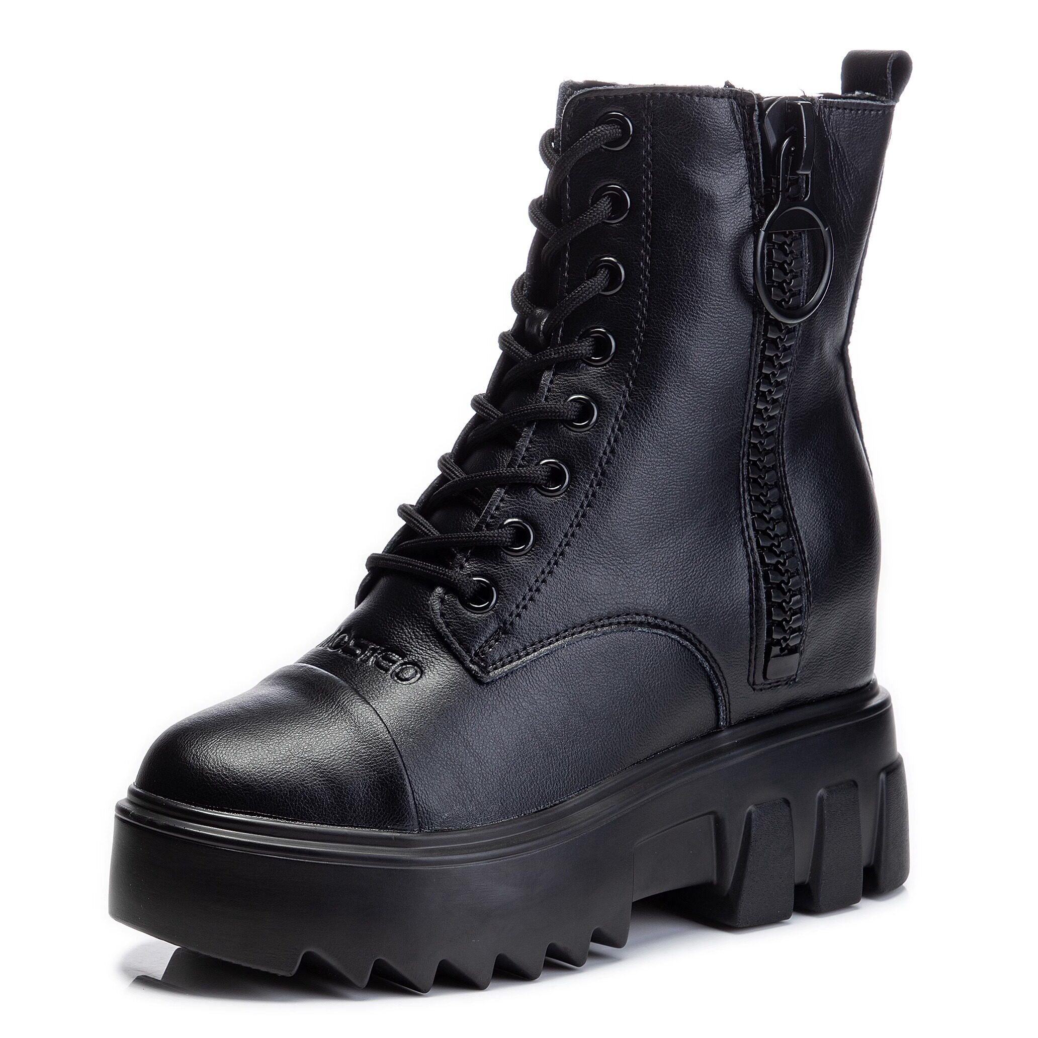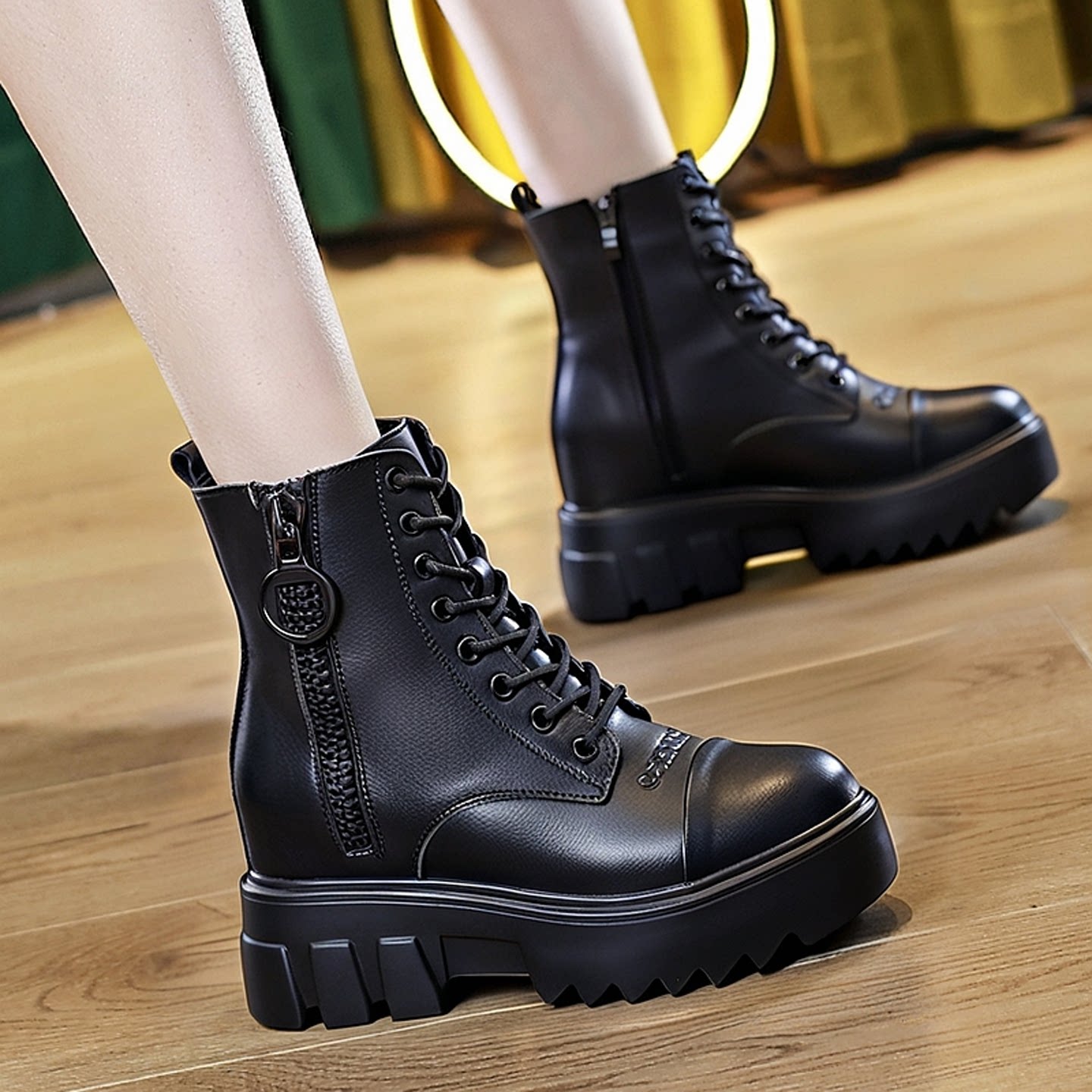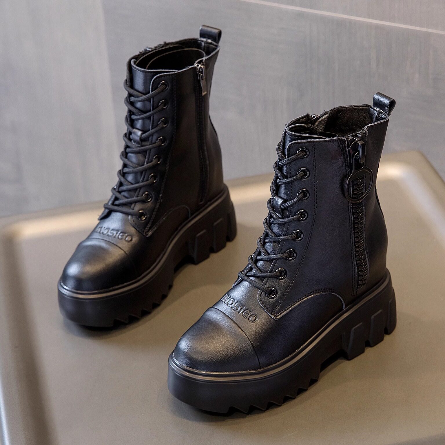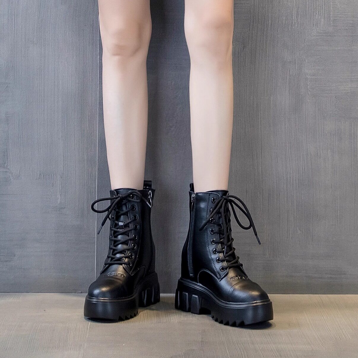 双拉链内增高9cm马丁靴女款2026新款厚底短靴冬季加绒小个子靴子