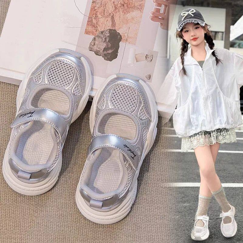 女童包头凉鞋夏季2026新款单网镂空透气小女孩软底防滑宝宝运动鞋