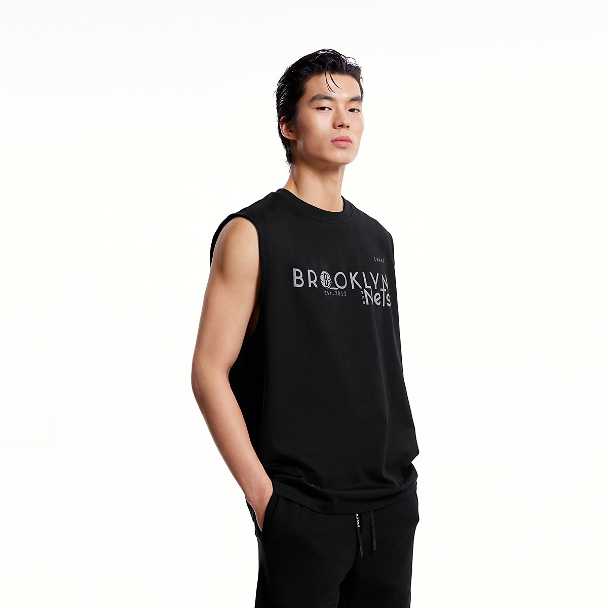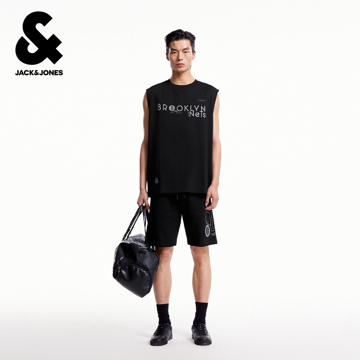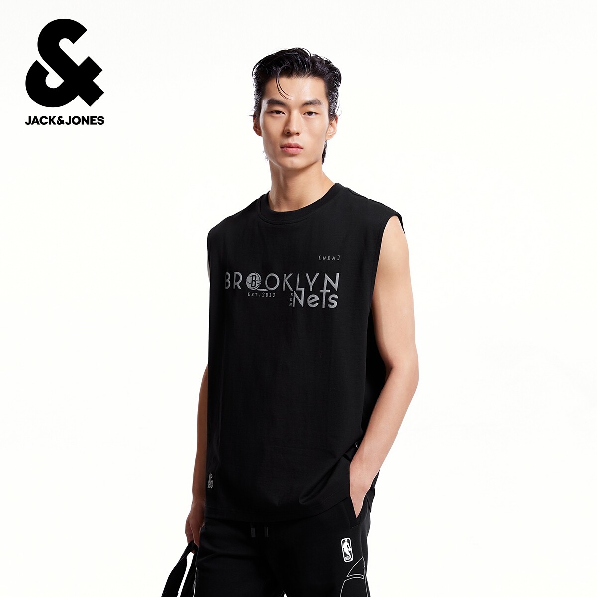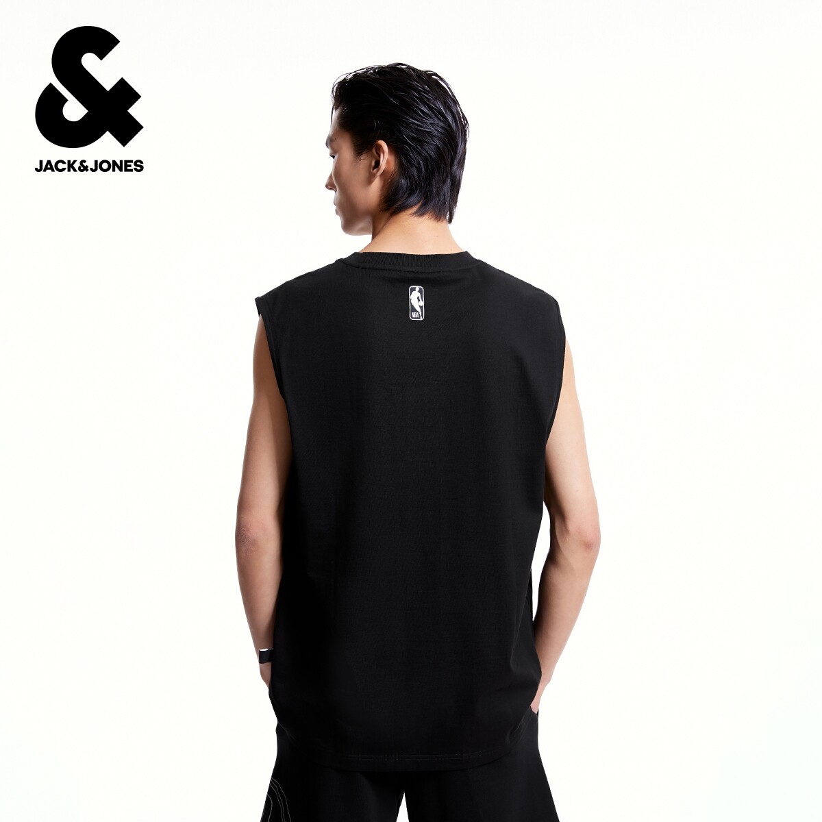 杰克琼斯NBA联名春季男装背心舒适篮球潮肌理感字母胶印上衣短袖