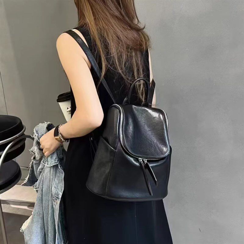 2025新款时尚百搭旅行双肩包女旅游轻便高级感女士休闲黑色小背包