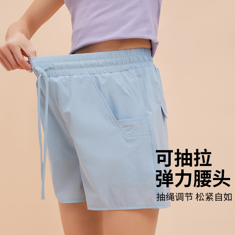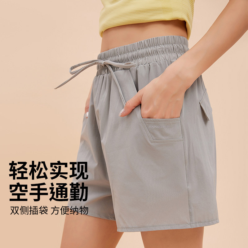 annerun防走光运动短裤女带内衬外穿夏训练健身裤跑步骑行瑜伽裤
