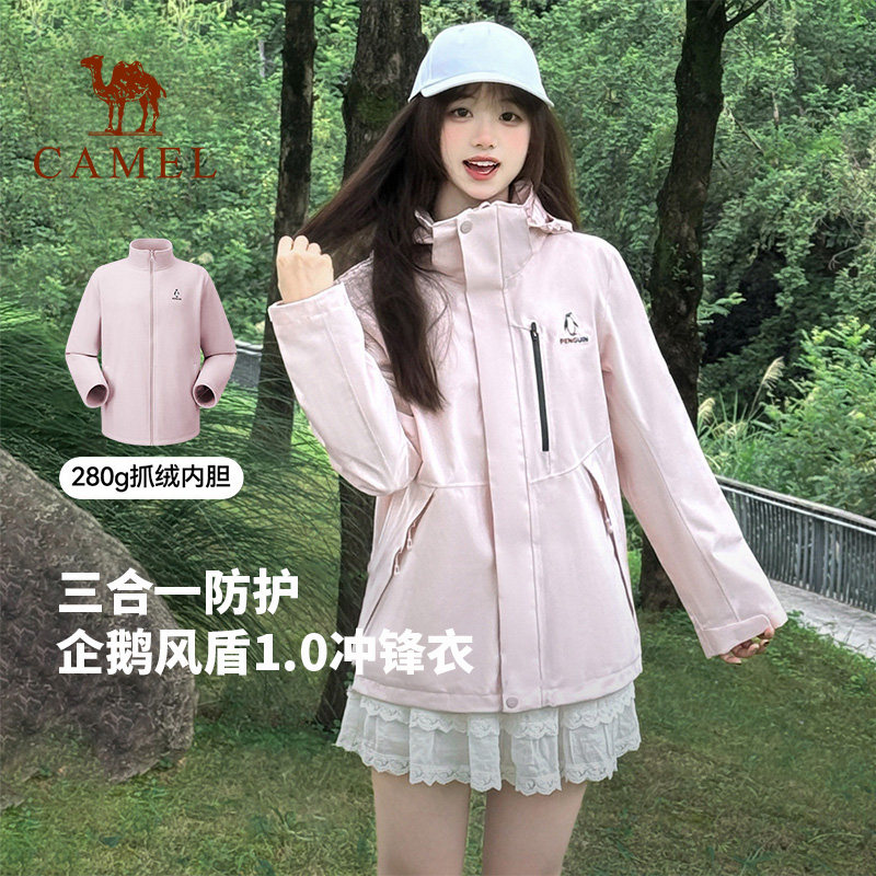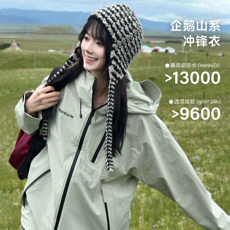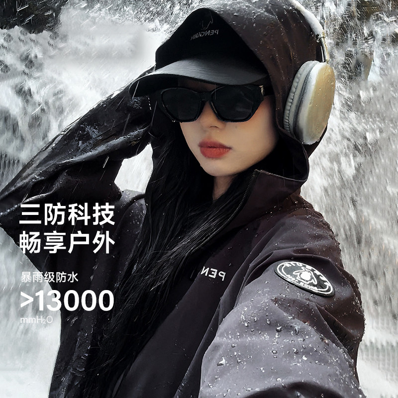 企鹅户外三合一冲锋衣女款红色外套2026秋季新款登山服防风防水
