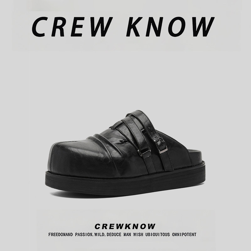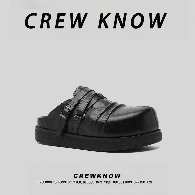 CREW KNOW时尚男鞋~黑色大头勃肯鞋厚底增高休闲穆勒鞋男一脚蹬