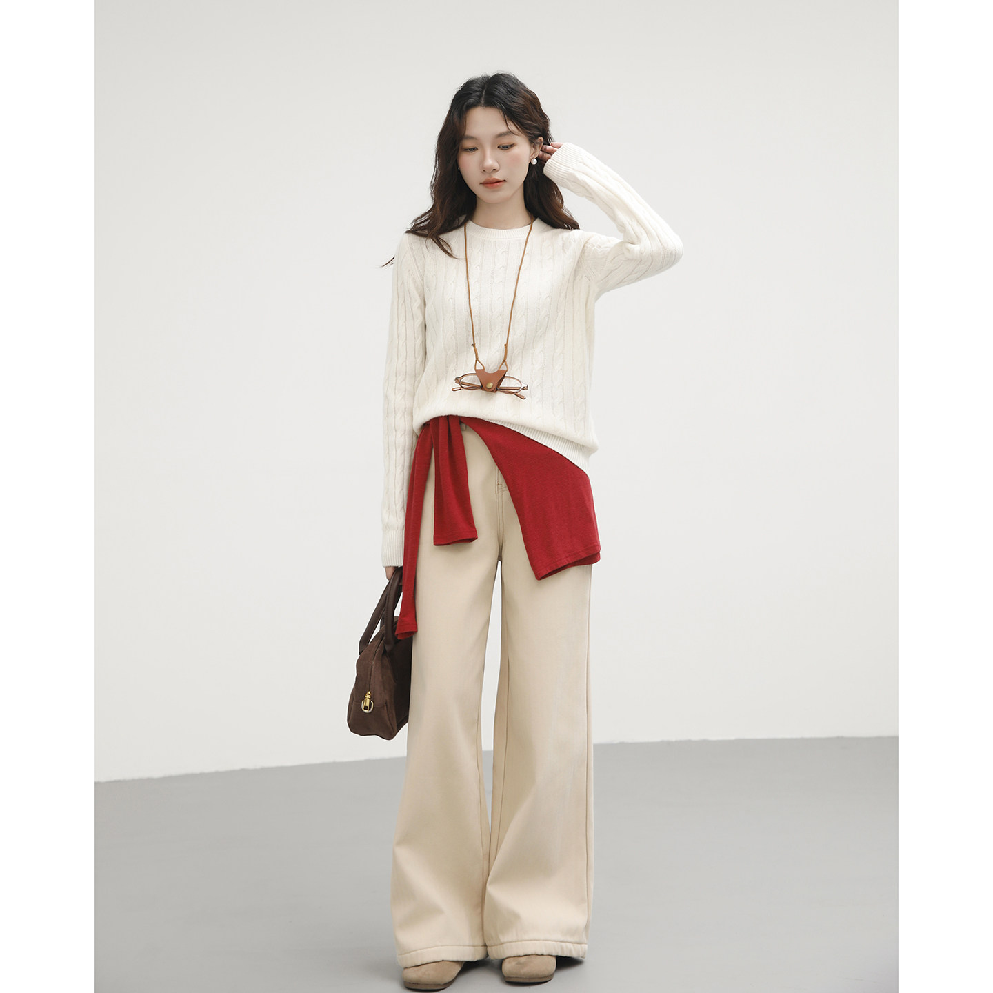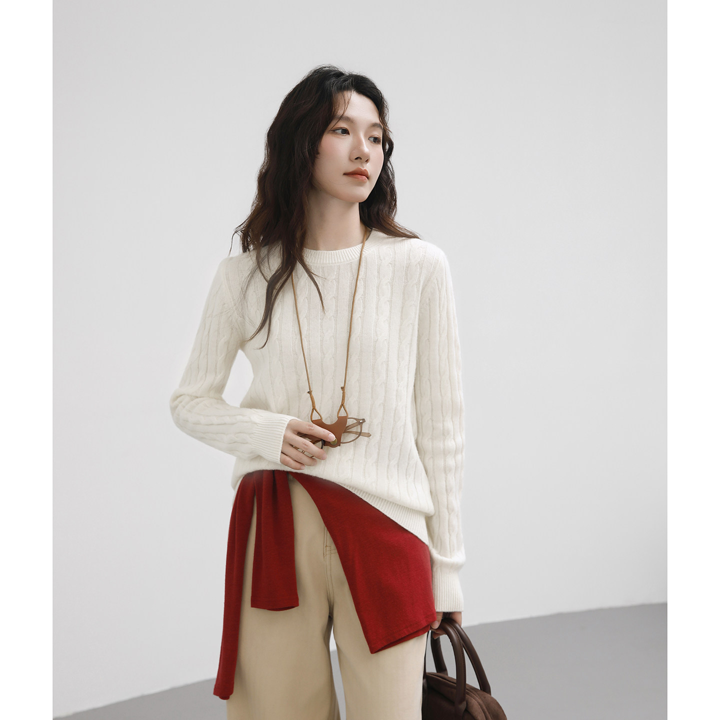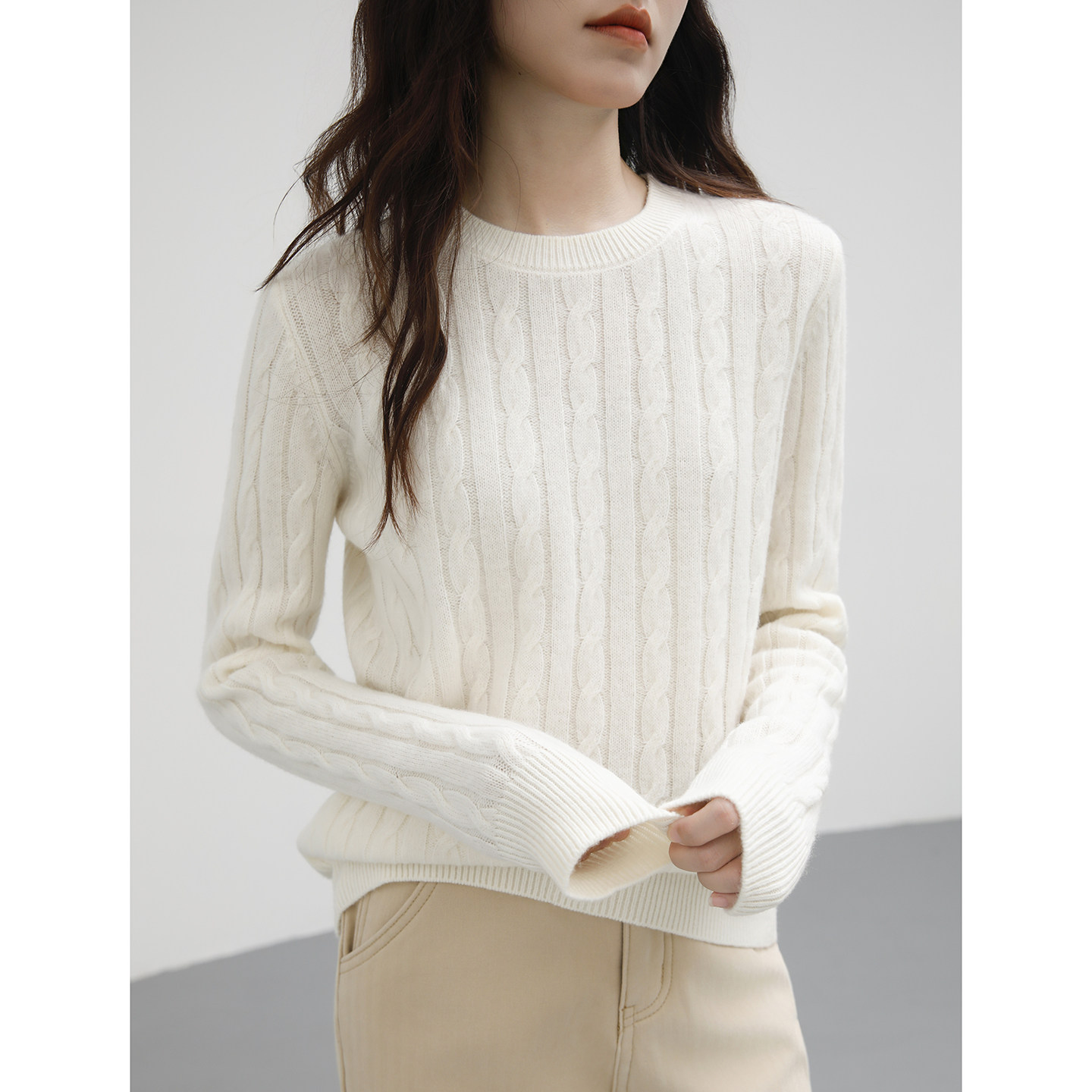 老钱风白色毛衣女款2026秋冬新款内搭宽松复古麻花圆领羊毛打底衫