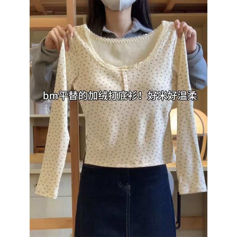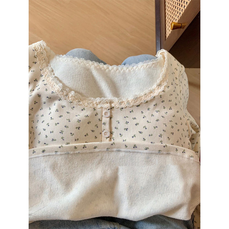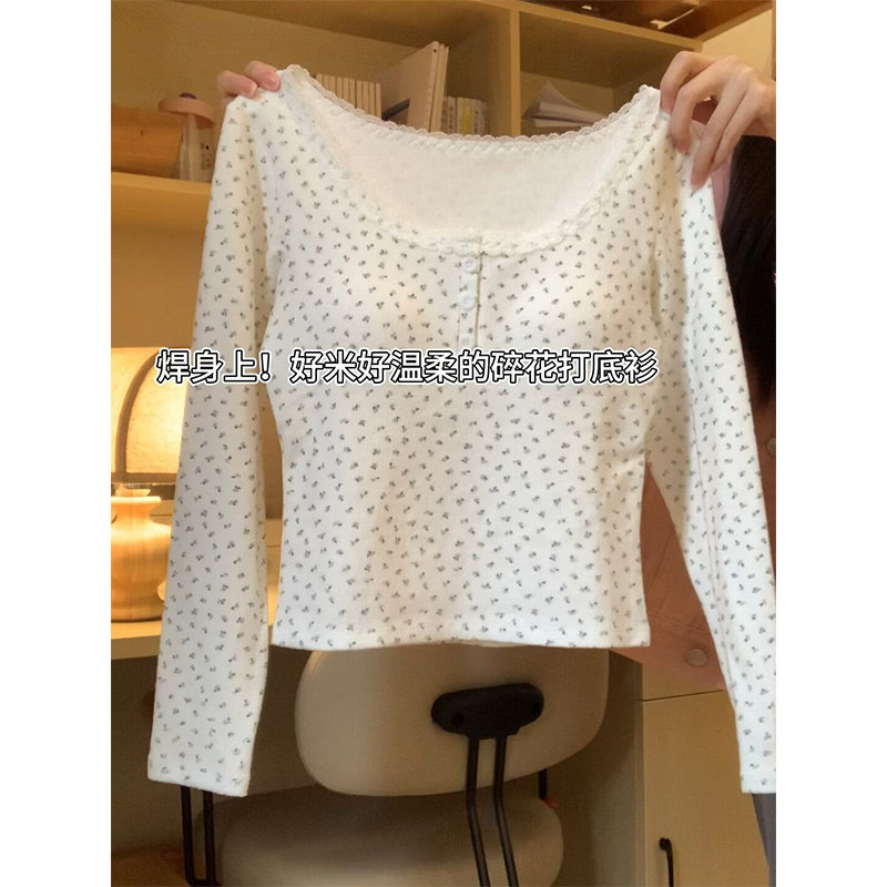 碎花长袖t恤女装2026新款春款设计感小众修身内搭纯欲甜辣小上衣