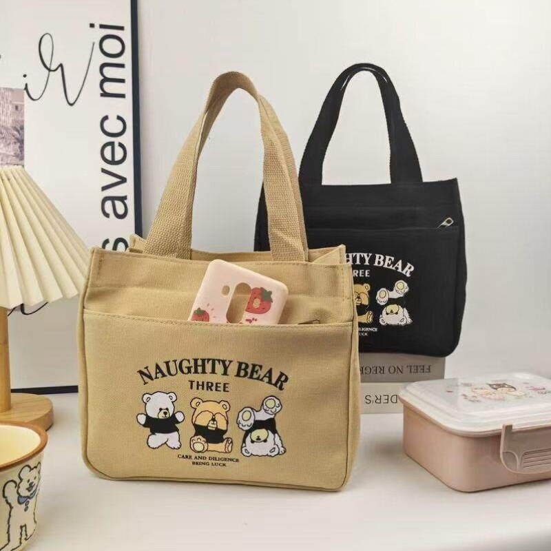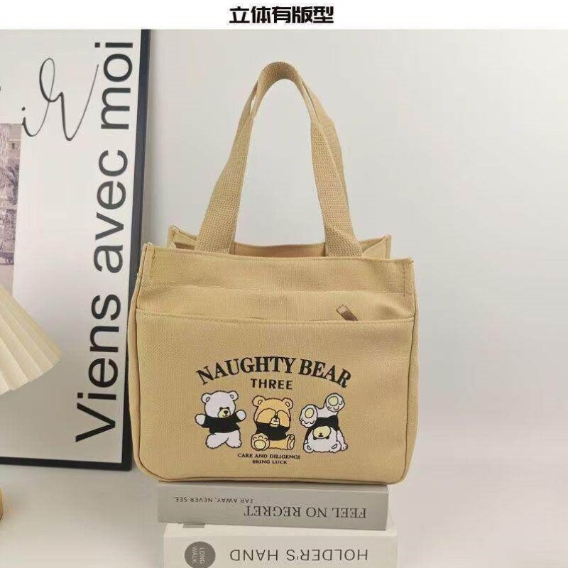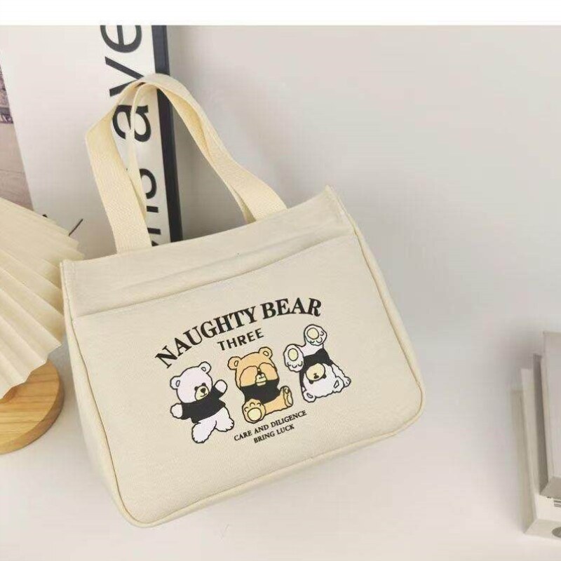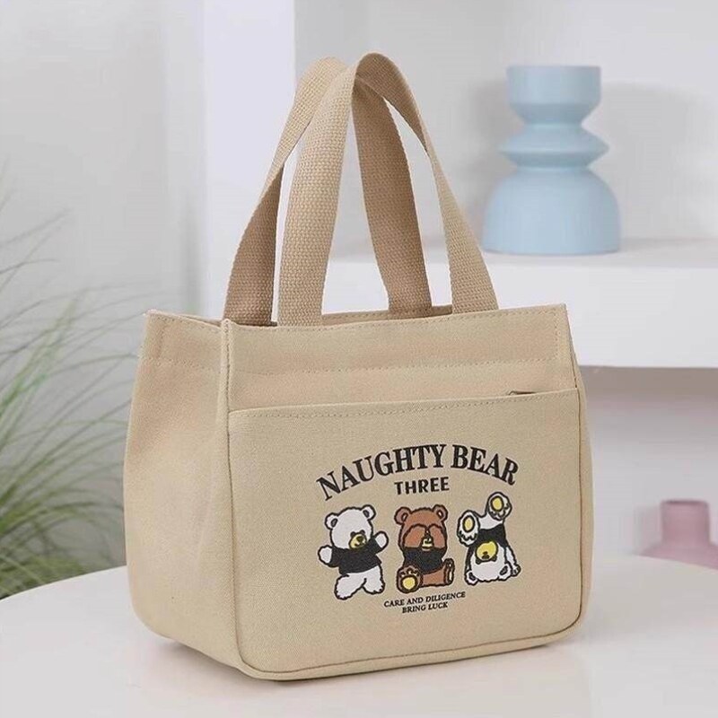 2024新款出门上班族杂物小拎包拉链洋气网红盒饭手提袋帆布女通勤