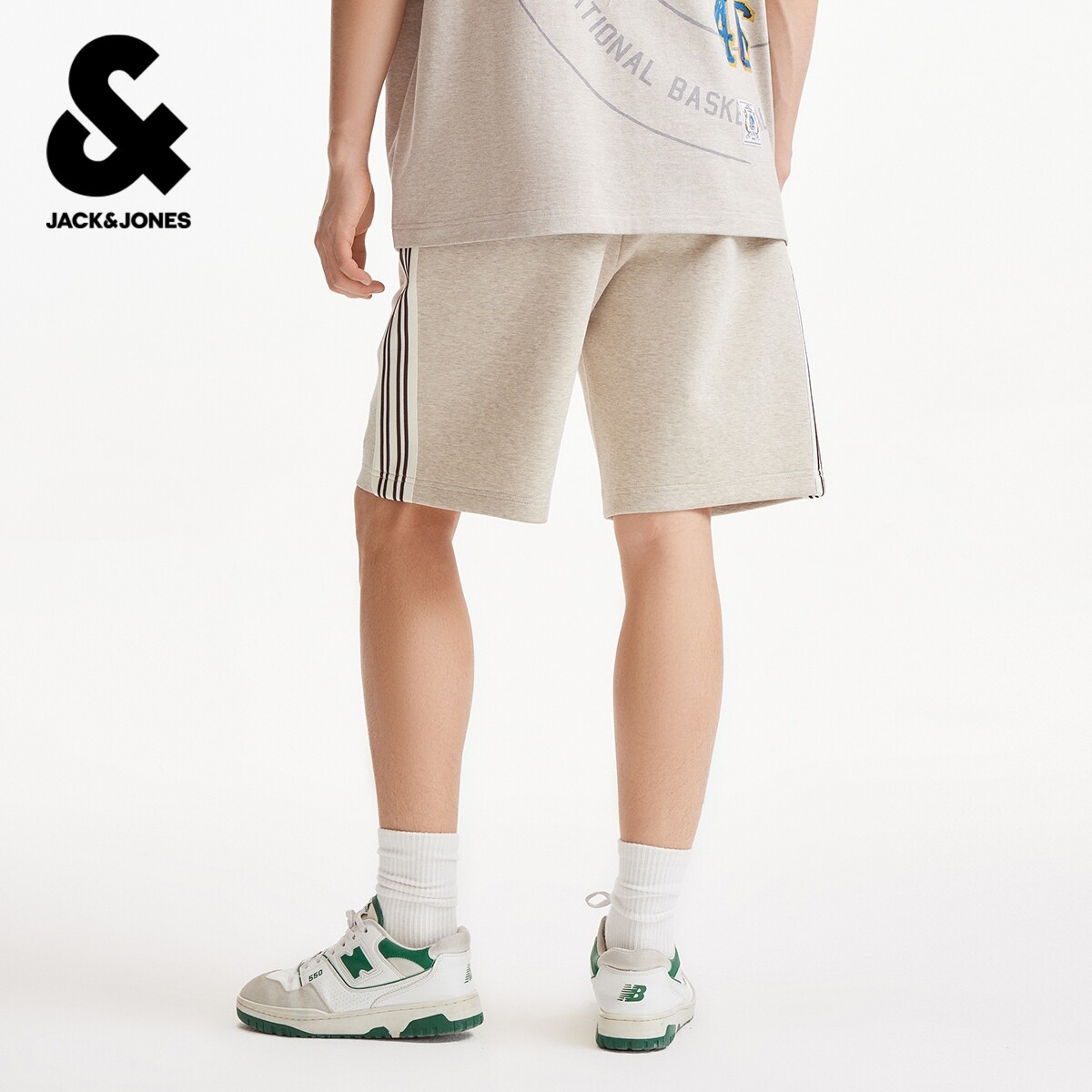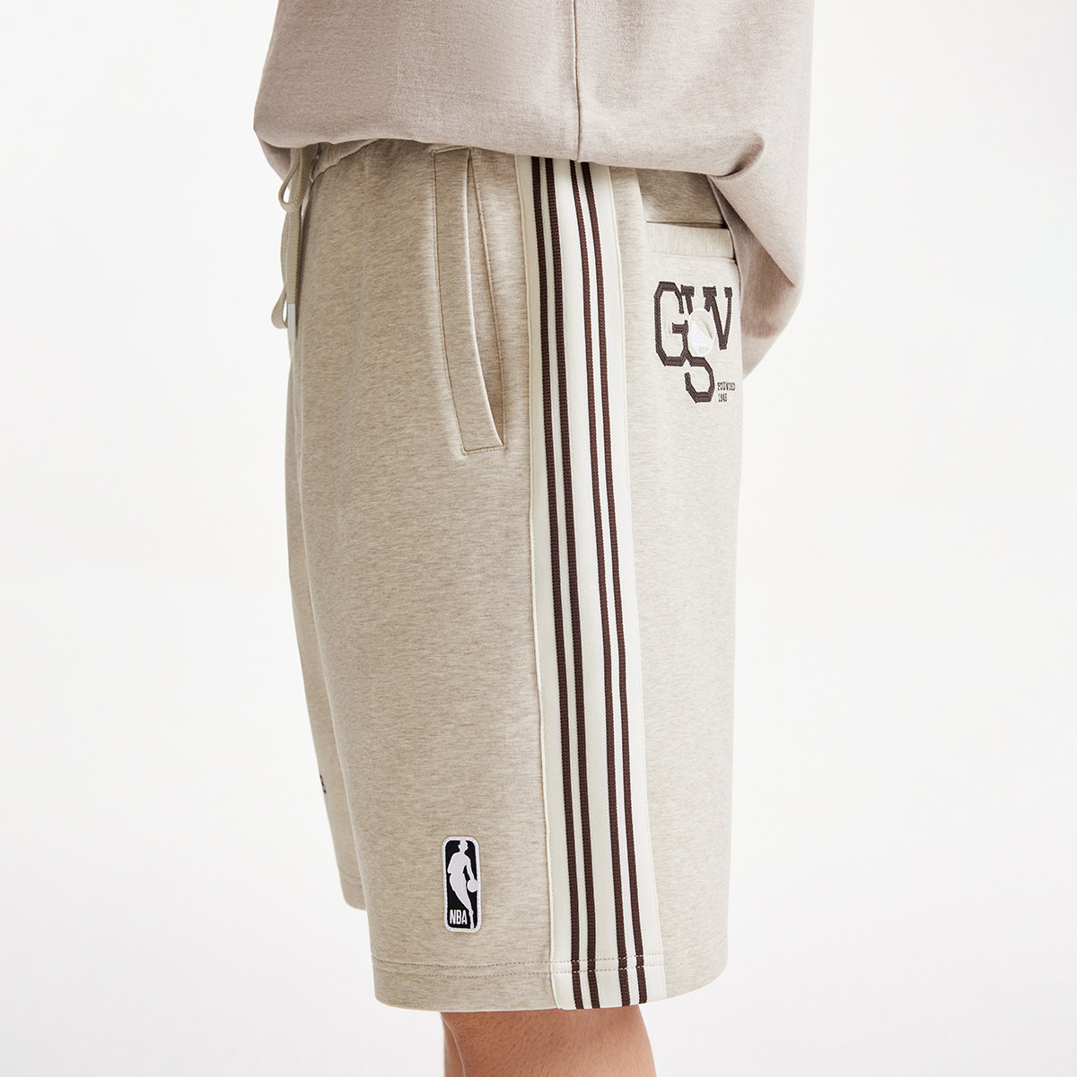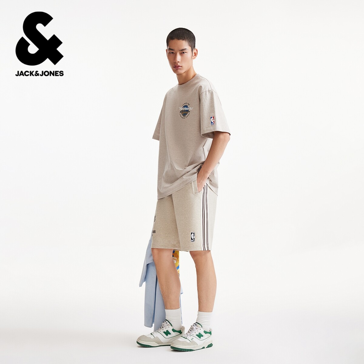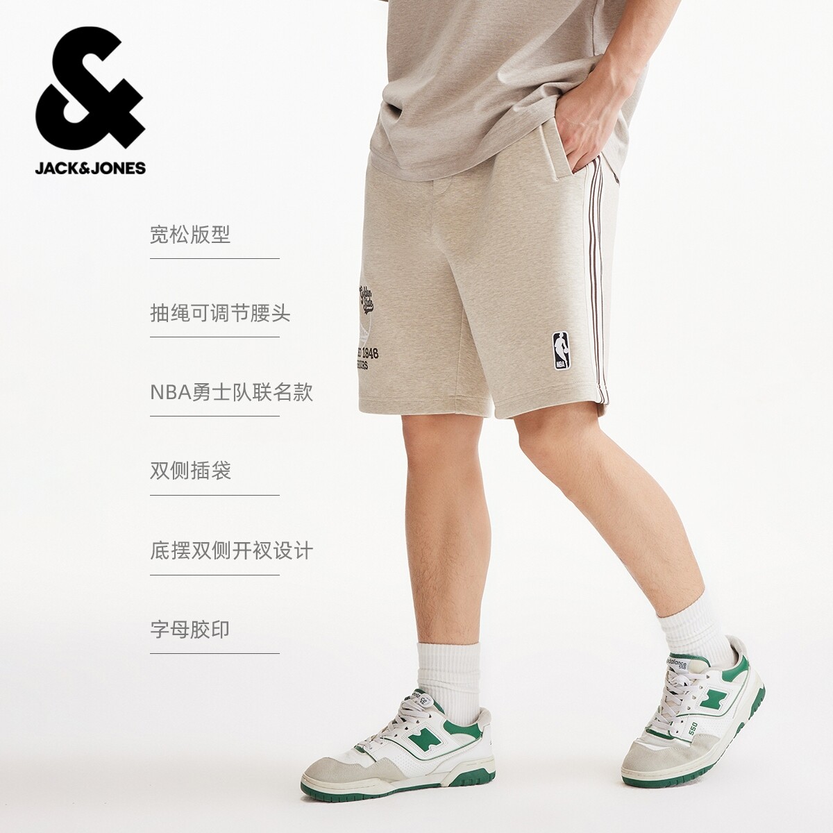 【NBA联名勇士队】杰克琼斯男装短裤侧面条纹撞色字母装饰宽松
