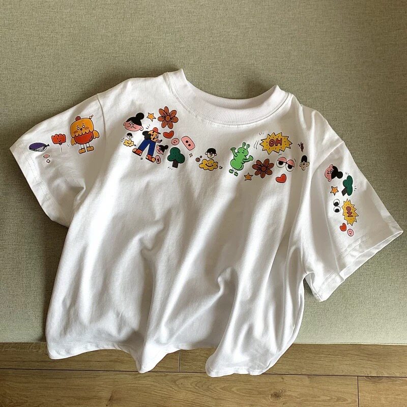 夏季2026儿童新款纯棉短袖T恤宝宝洋气打底衫男童女童卡通上衣服