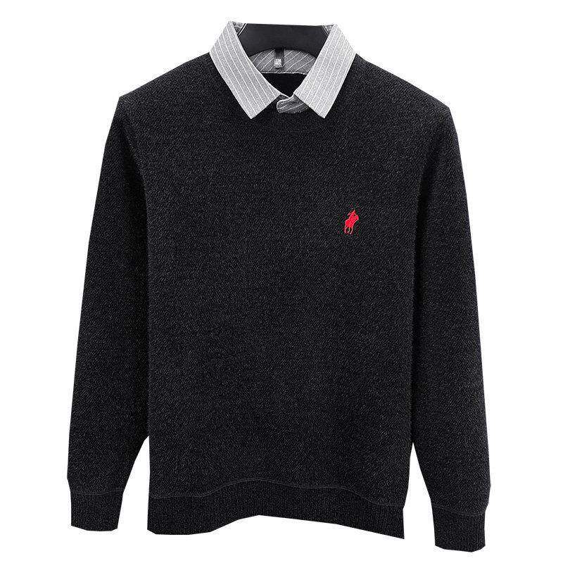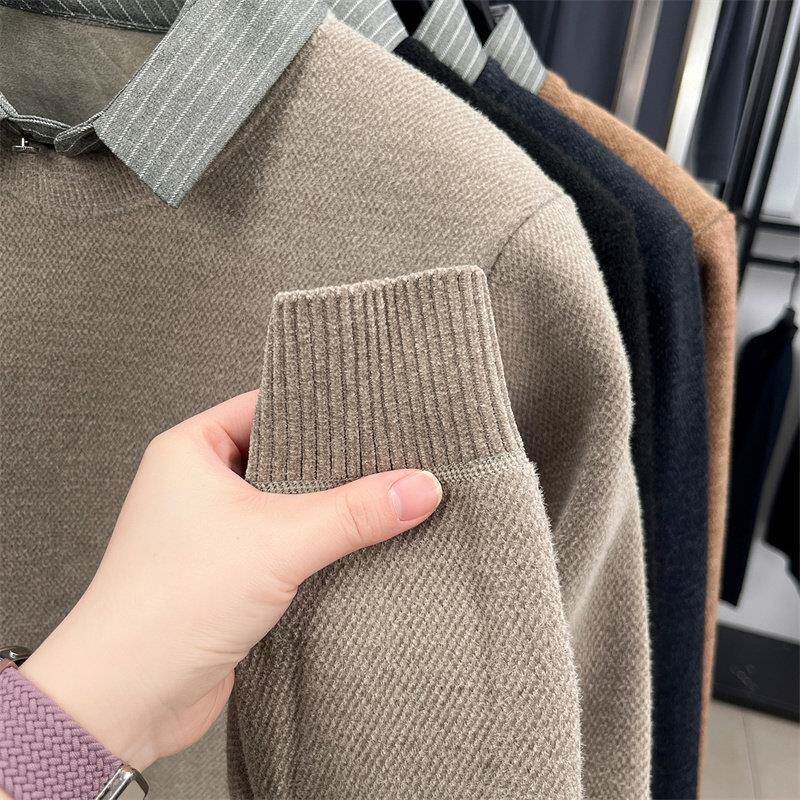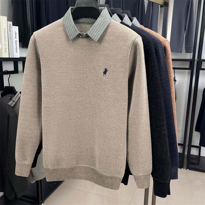 假两件衬衫领毛衣男保暖内搭打底衫2026年冬季新款高端针织衫男款