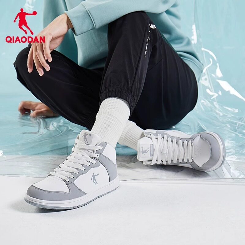 乔丹高帮板鞋灰色AJ空军一号秋冬2026新款皮面运动鞋男百搭休闲鞋