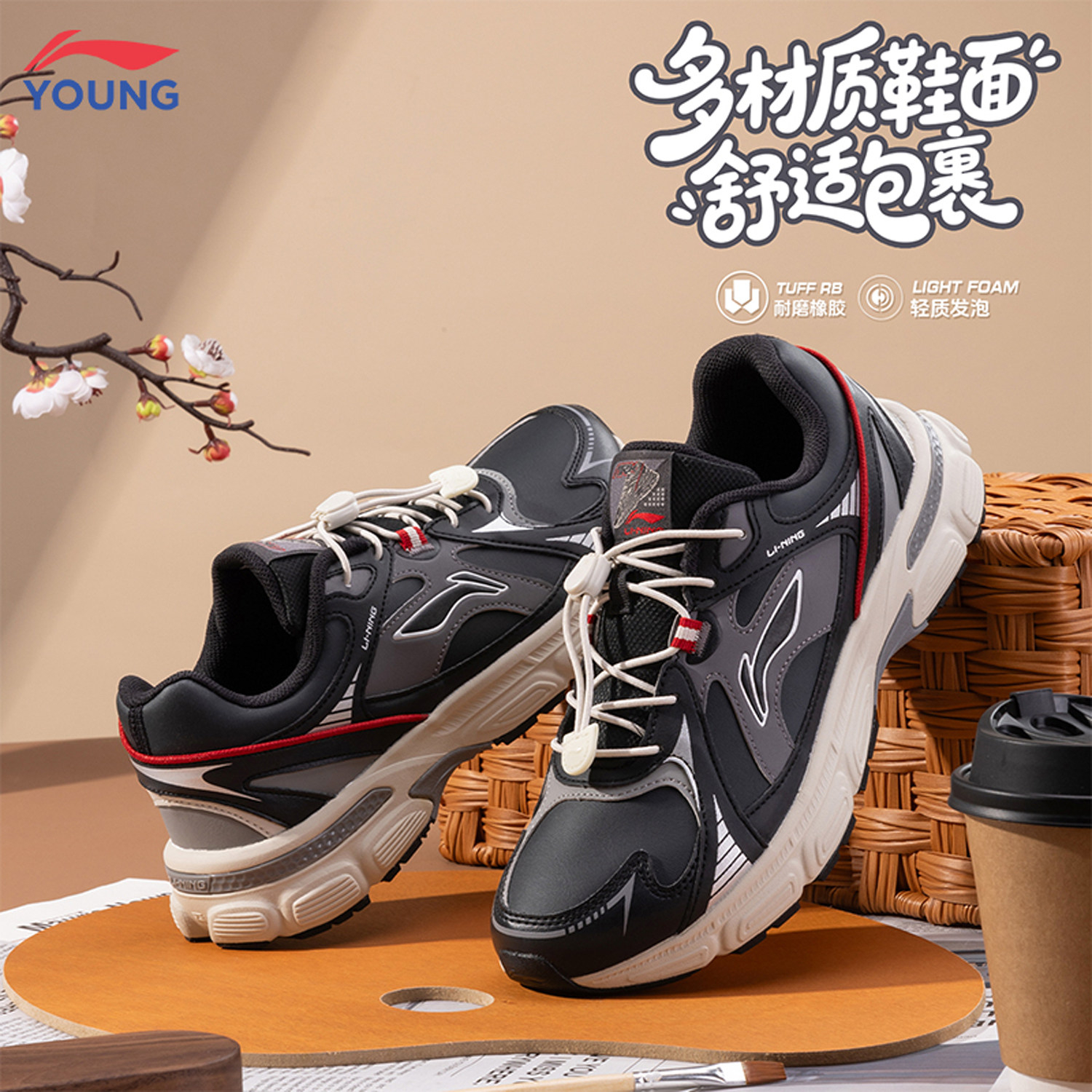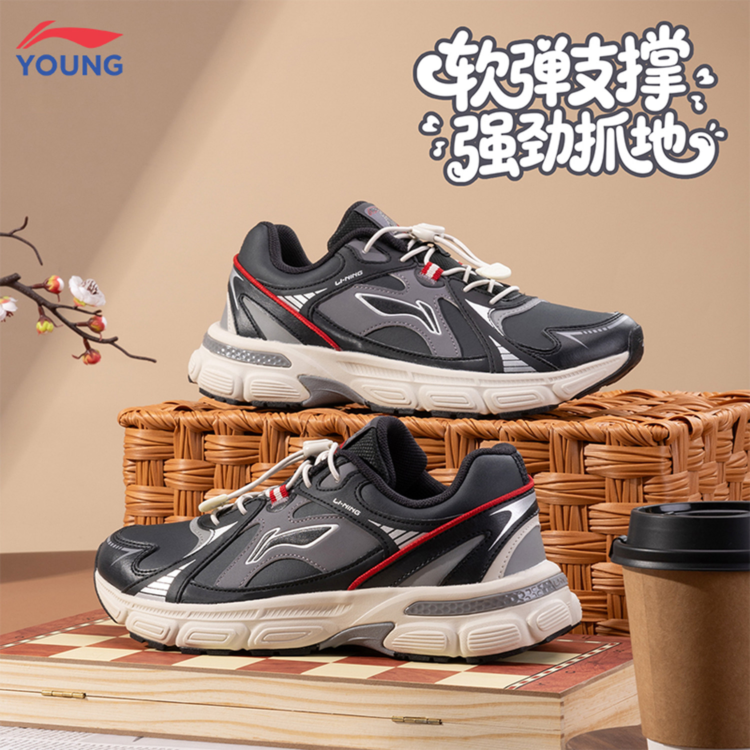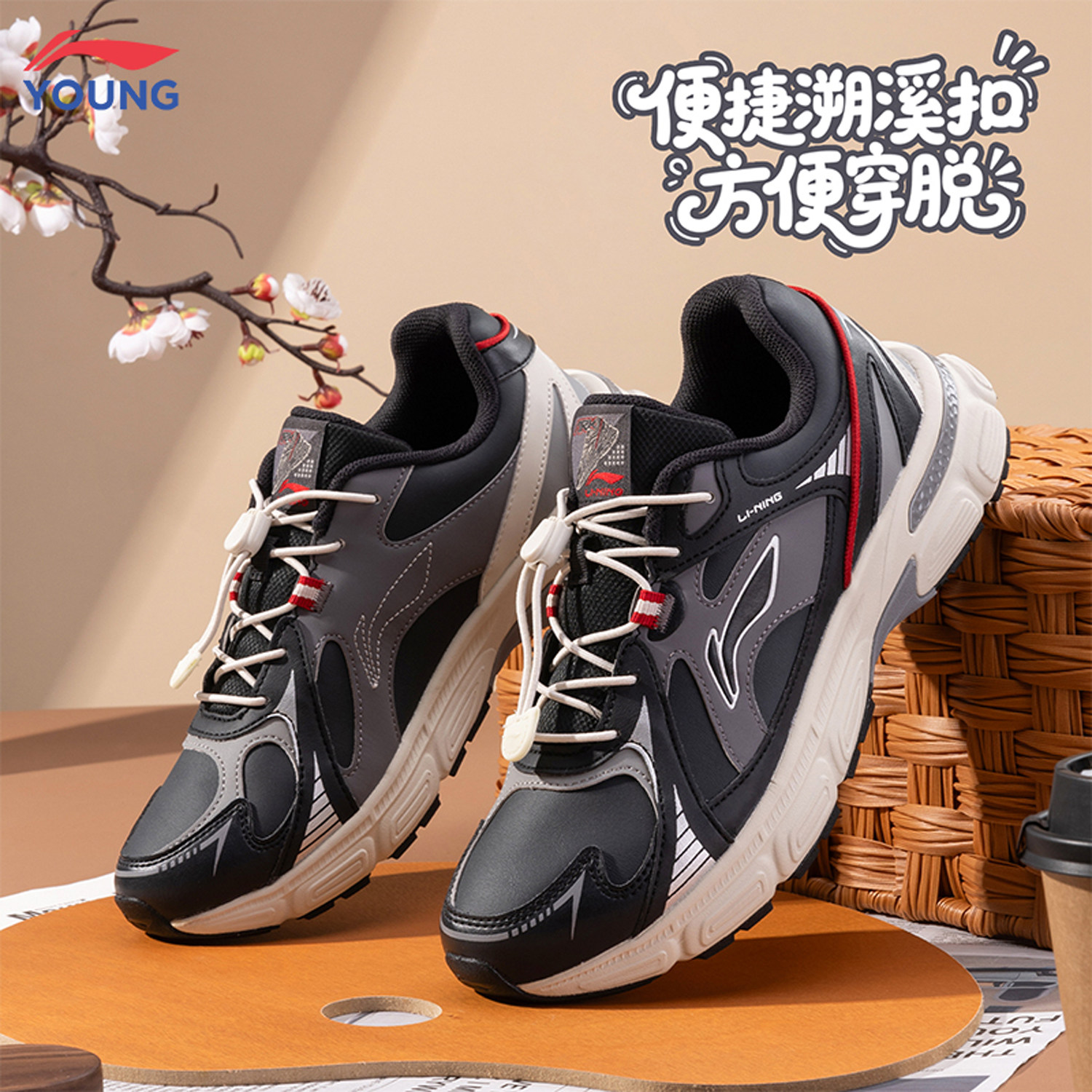 李宁官方旗舰正品男女童运动鞋子皮面防水柔软轻质缓震回弹休闲鞋
