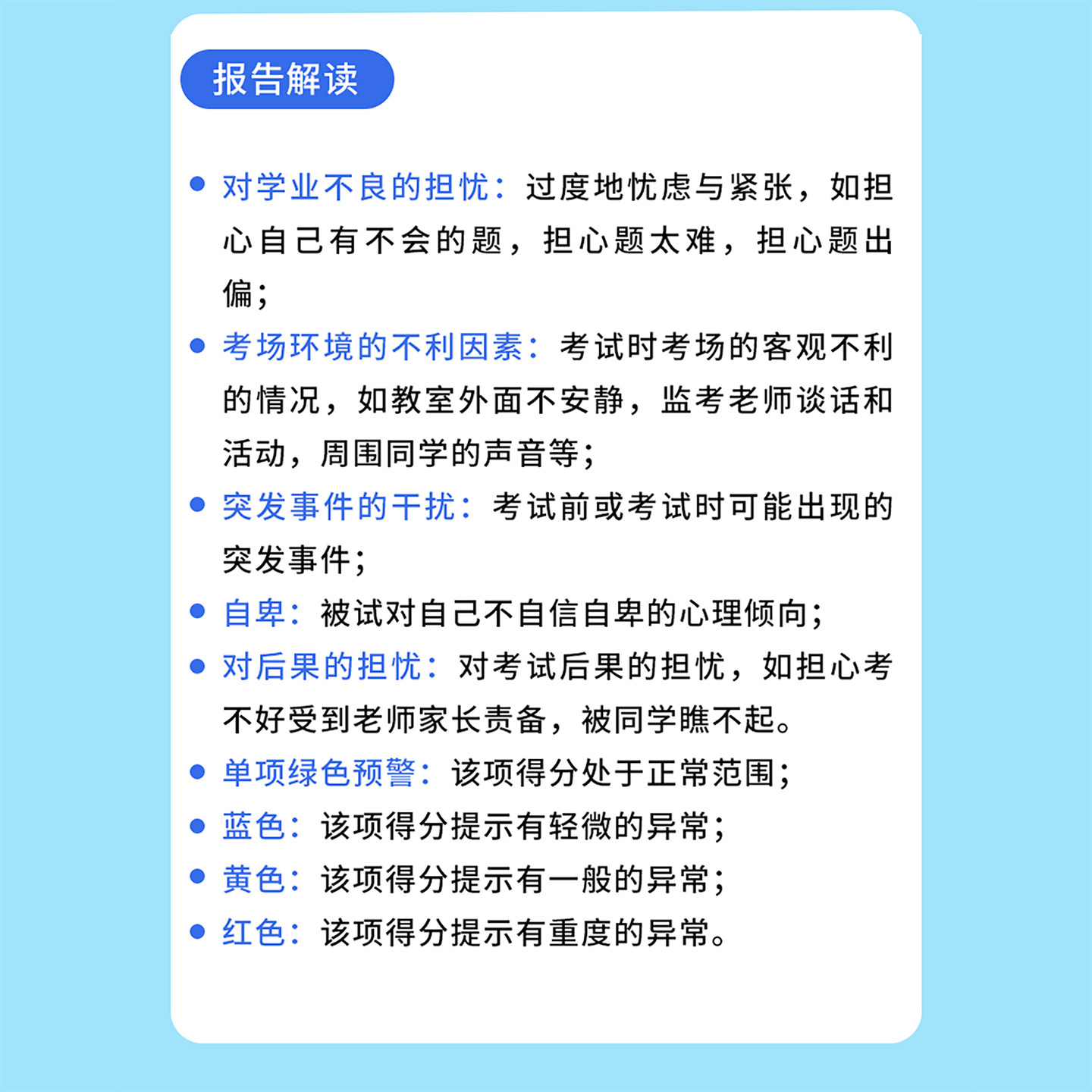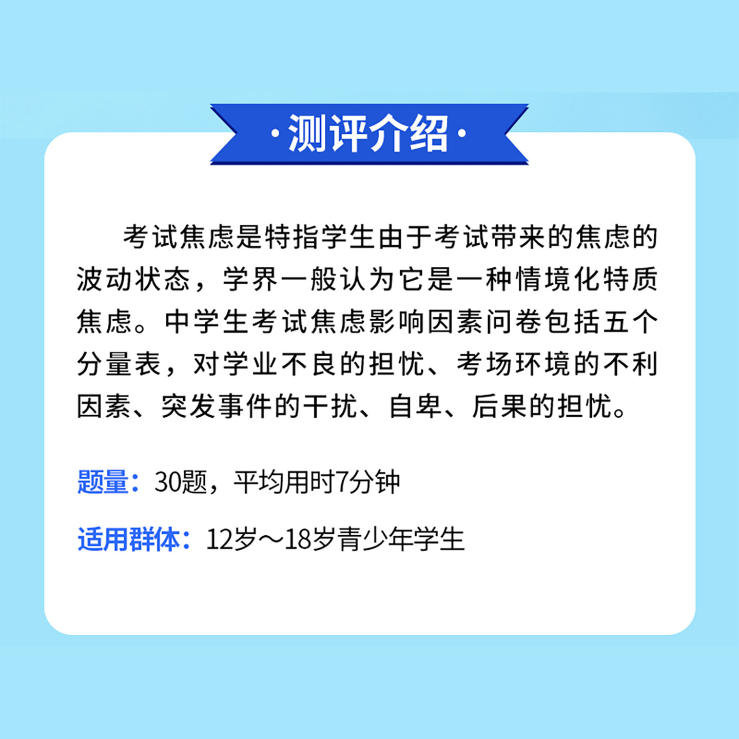 中学生考试焦虑影响因素问卷测试考前抑郁紧张疏导专业心理测评表