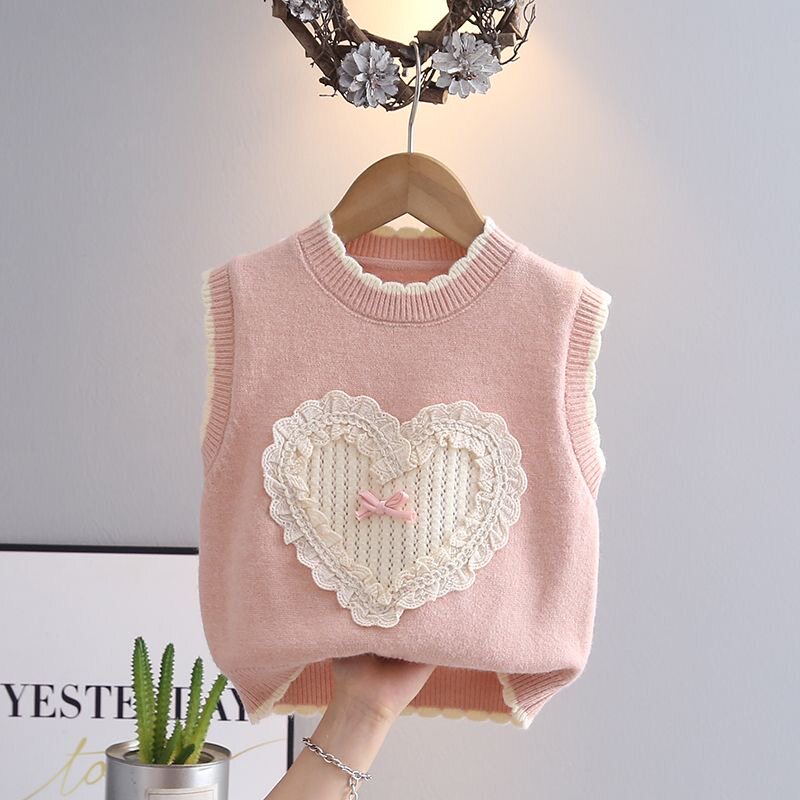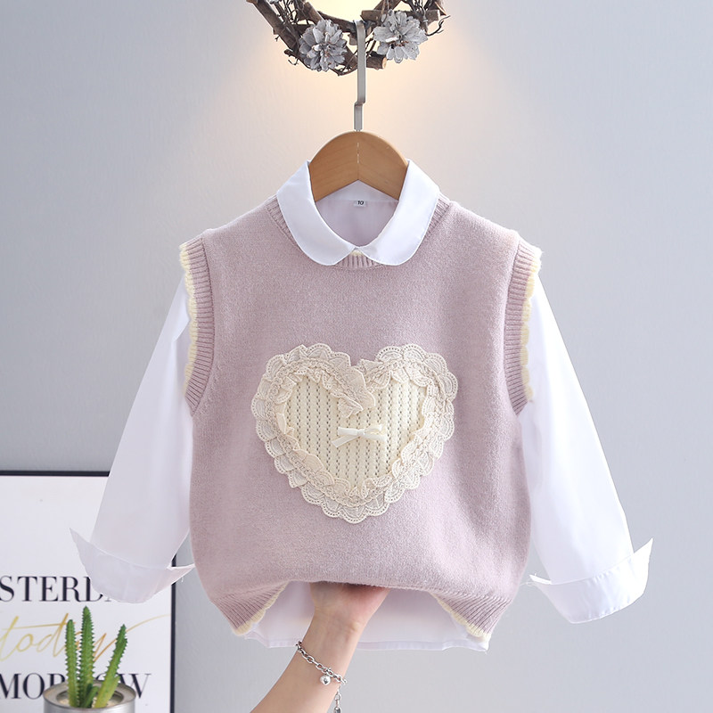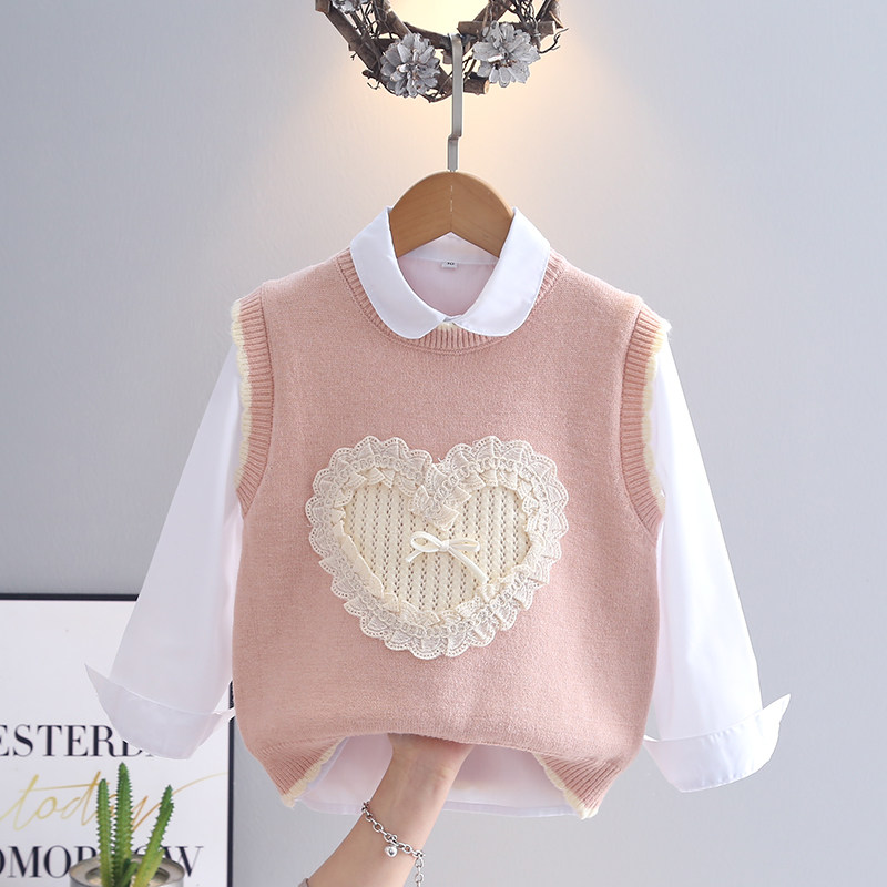 卡立洛女童毛衣春季2025新款粉色儿童春装女孩白色衬衫背心两件套