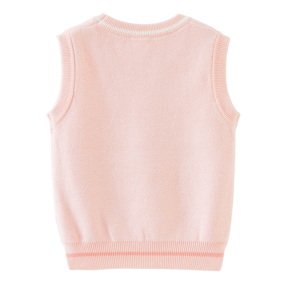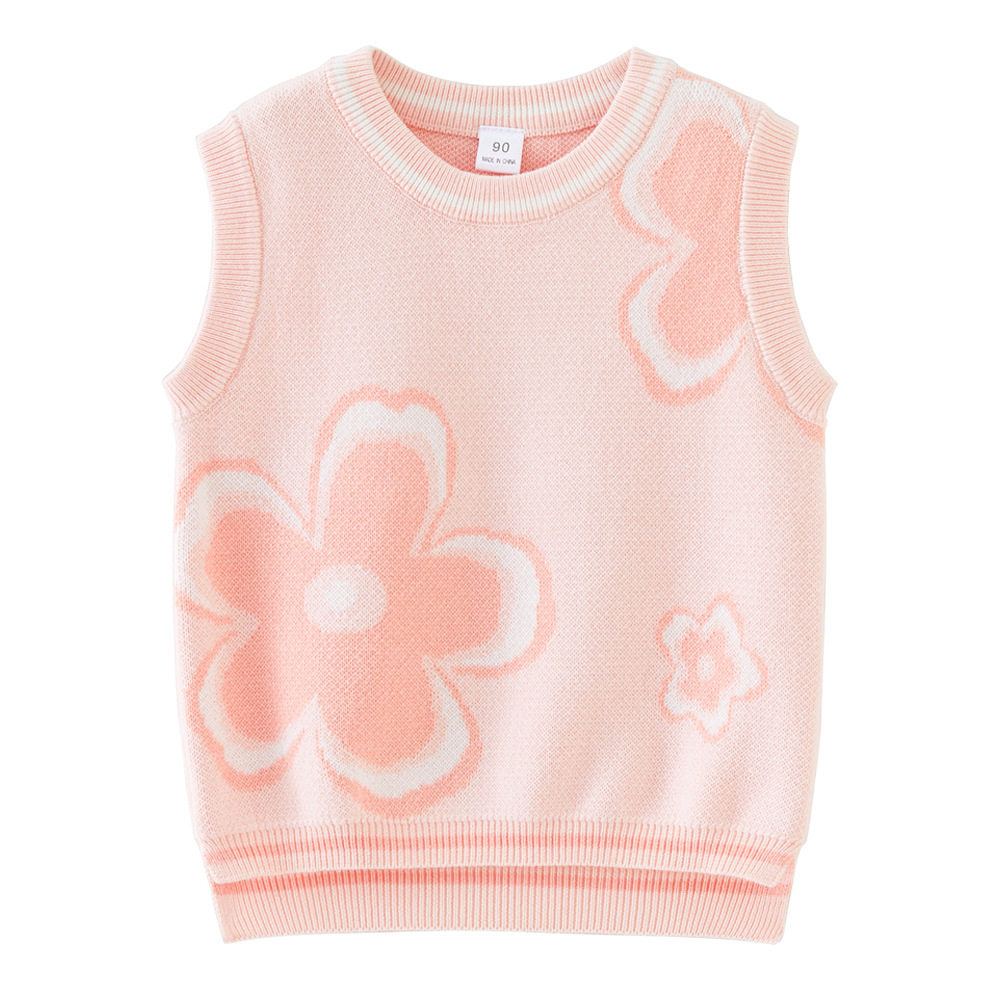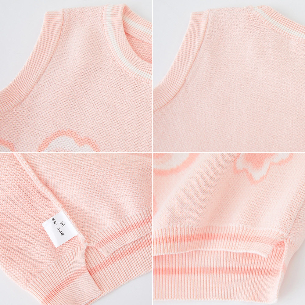 女童毛衣背心马甲秋冬款宝宝婴儿纯棉粉色花朵圆领套头小马夹