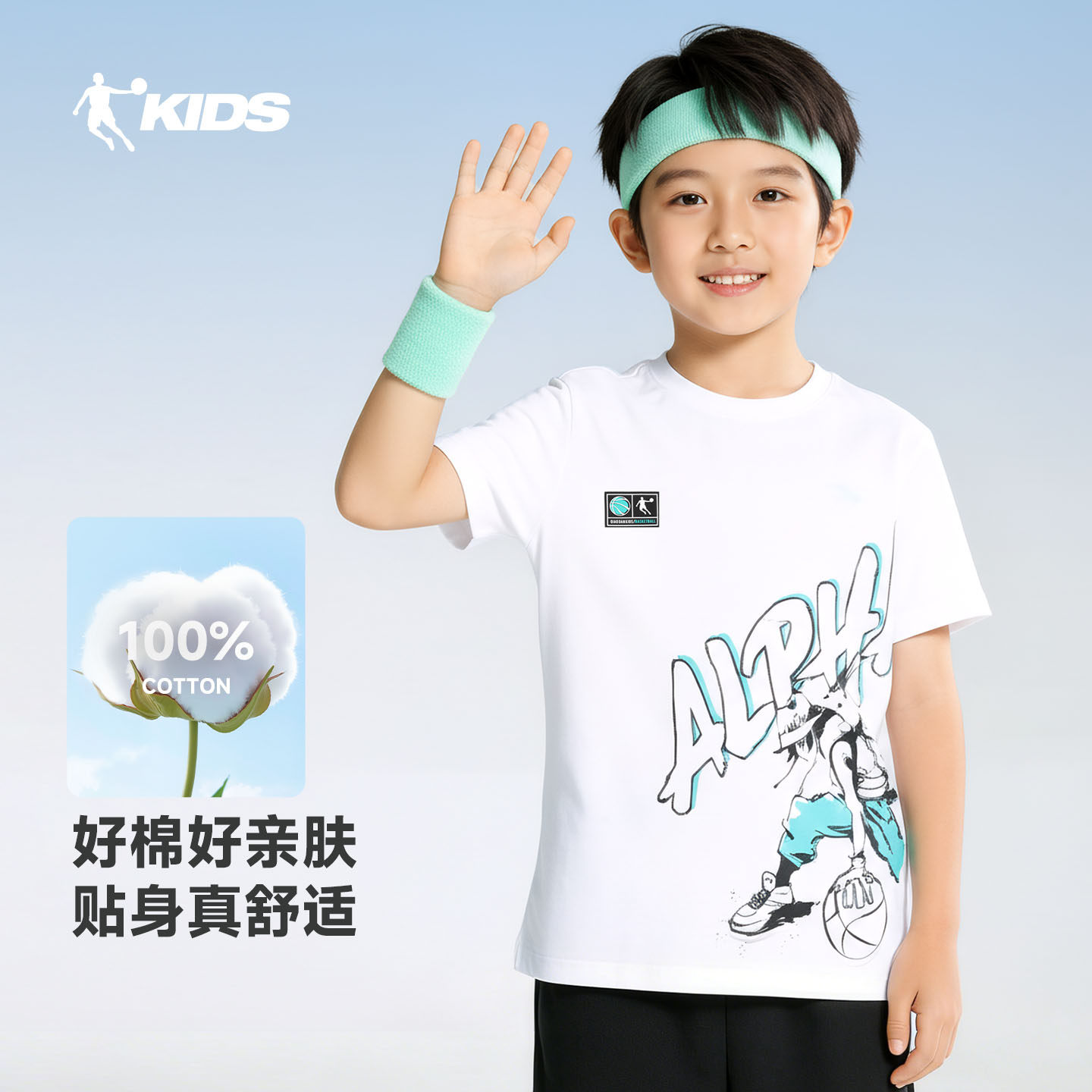 乔丹童装男童短袖纯棉儿童夏装2026夏季新款大童运动t恤男孩上衣