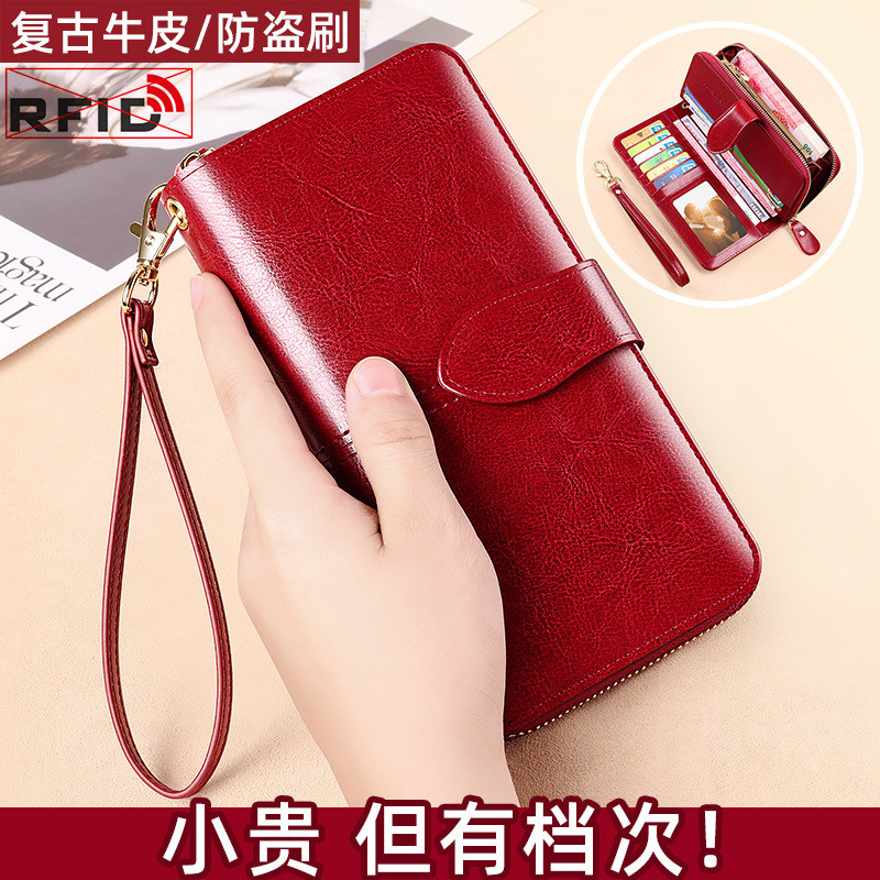 新女士长款钱包多功能卡夹真皮手拿腕带正品高档大容量放手机双层