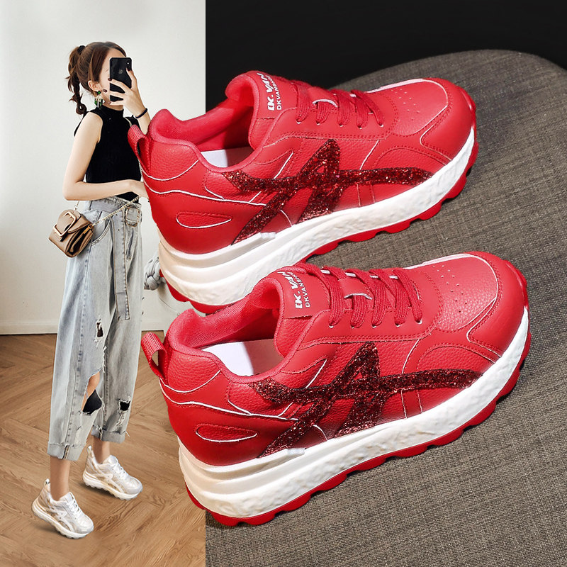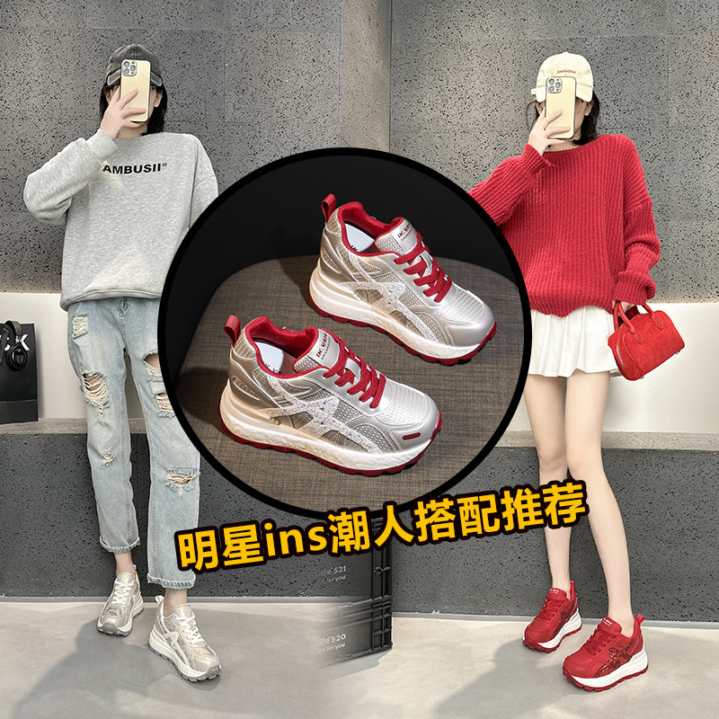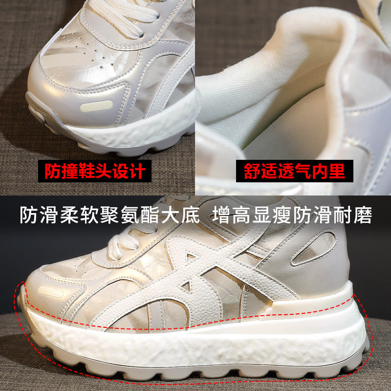 春季新款2026超火真皮内增高老爹鞋女透气休闲百搭厚底阿甘小白鞋