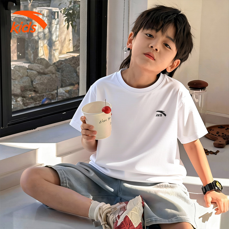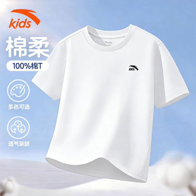 安踏儿童T恤短袖衫纯棉男女童短袖2026夏季新款透气中大童上衣男