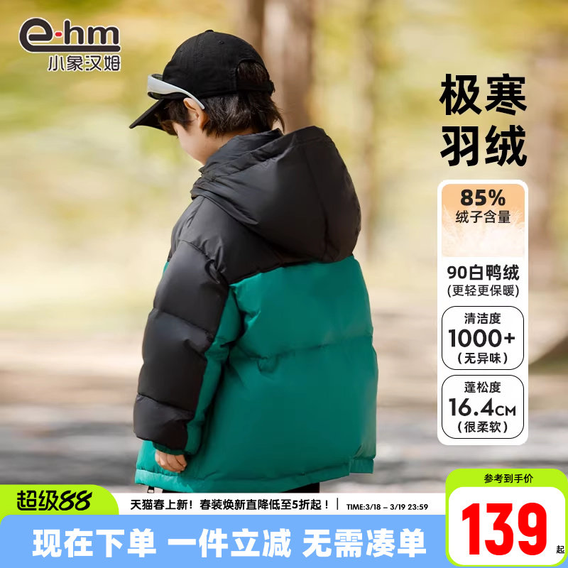 小象汉姆男童男童羽绒服2026新款中大童儿童外套冬装韩版白鸭绒
