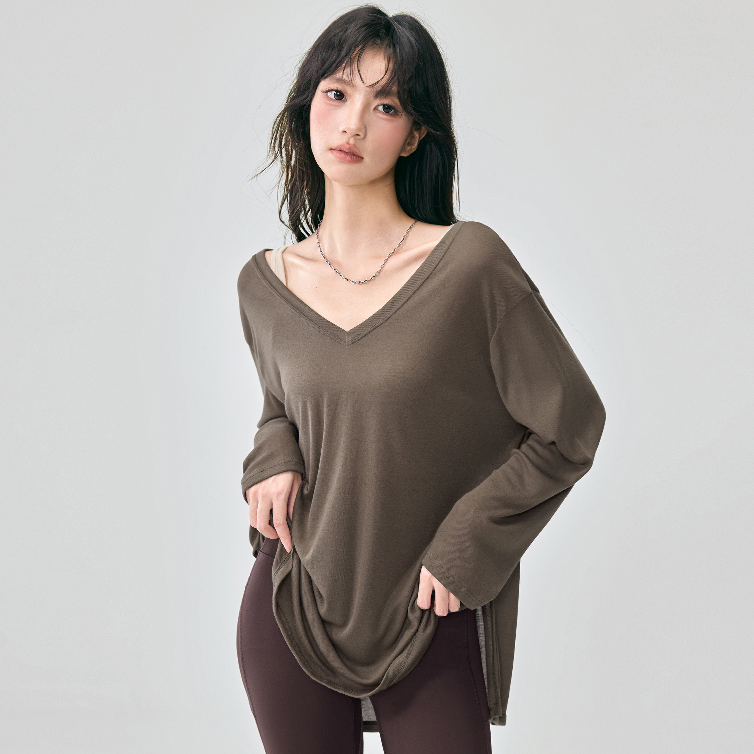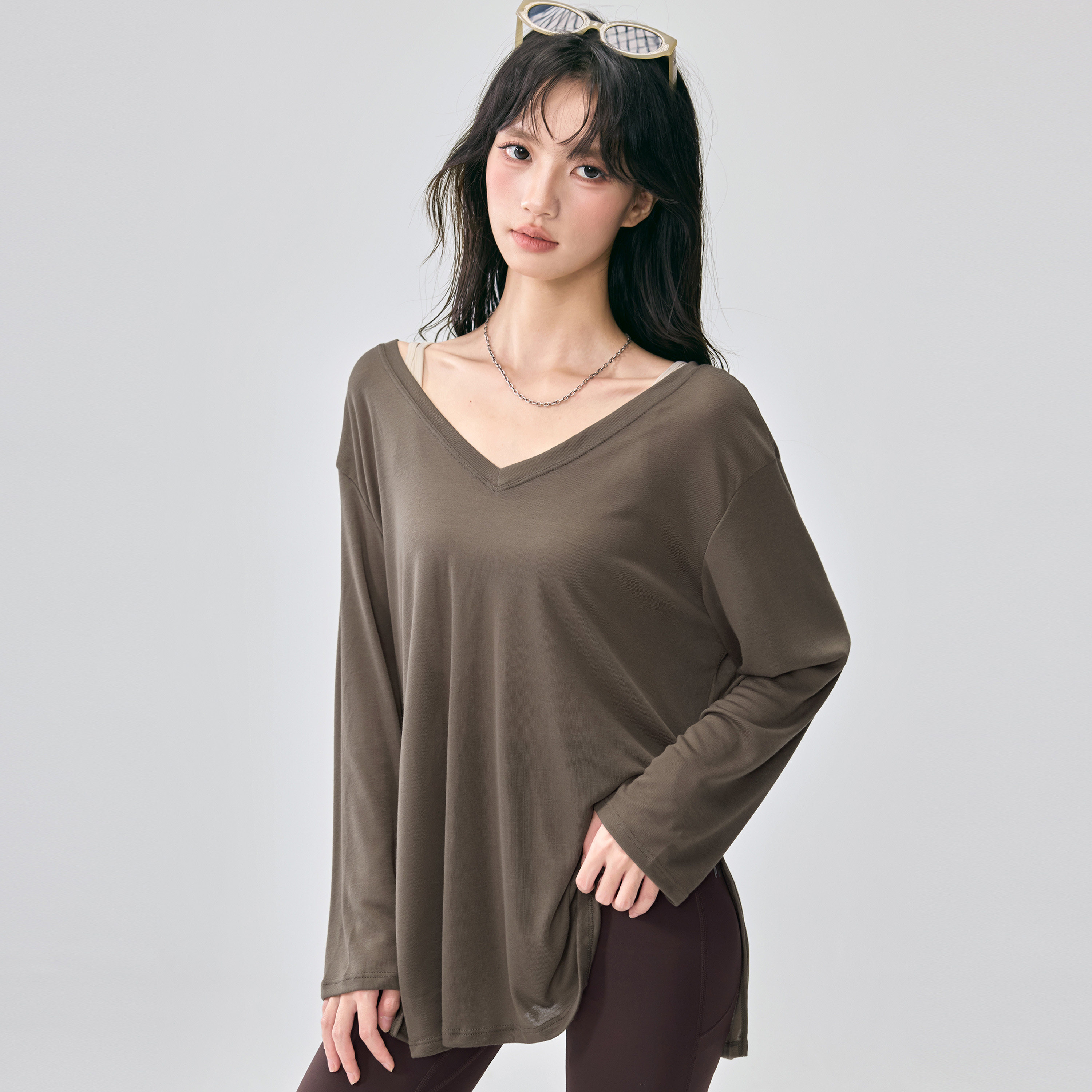 宽松显瘦瑜伽服长袖女高级感运动罩衫跑步普拉提训练新款健身上衣