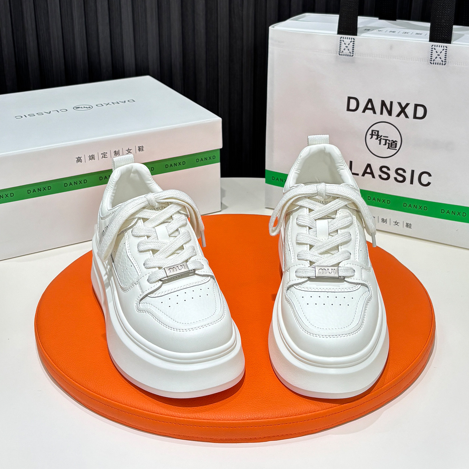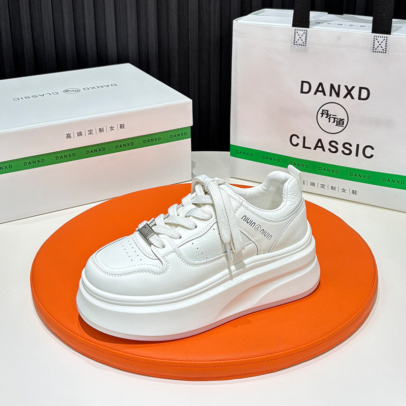 丹行道真皮厚底系带小白鞋女款2026春季轻便软底增高透气休闲板鞋