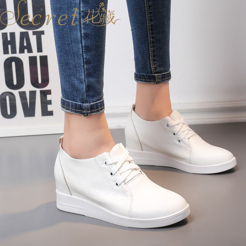 新款春秋女鞋内增高小白鞋女真皮厚底系带休闲鞋韩版深口单鞋33码