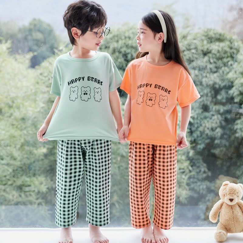 儿童睡衣男孩纯棉夏季薄款男童女童夏天空调服小孩短袖长裤家居服