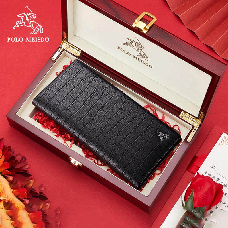 正品保罗美思得钱包男真皮长款2024新款羊皮夹鳄鱼纹钱夹男士礼物